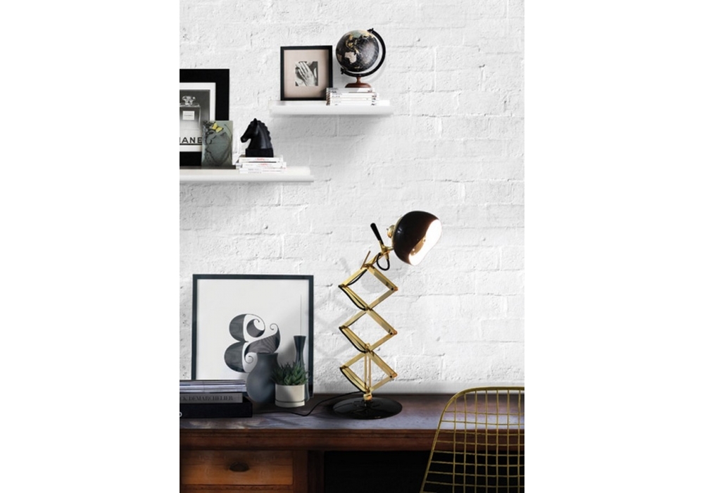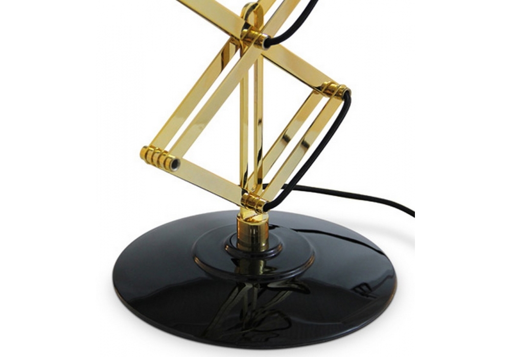 Billy, entworfen von DelightFULL, ist eine Tischlampe, die Struktur und der Lampenschirm sind handgefertigt aus Messing und Aluminium, sie hat auch eine vergoldete Oberfläche und einen schwarz lackierten Lampenschirm.