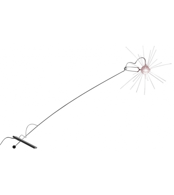 Mozzkito, entworfen und hergestellt von Ingo Maurer, ist eine Tischleuchte mit einer Struktur aus Metall, Kunststoff und Gummi. Durch die bewegliche Grundplatte können Sie die Neigung der Leuchte variieren. Verstellbarer Reflektor.