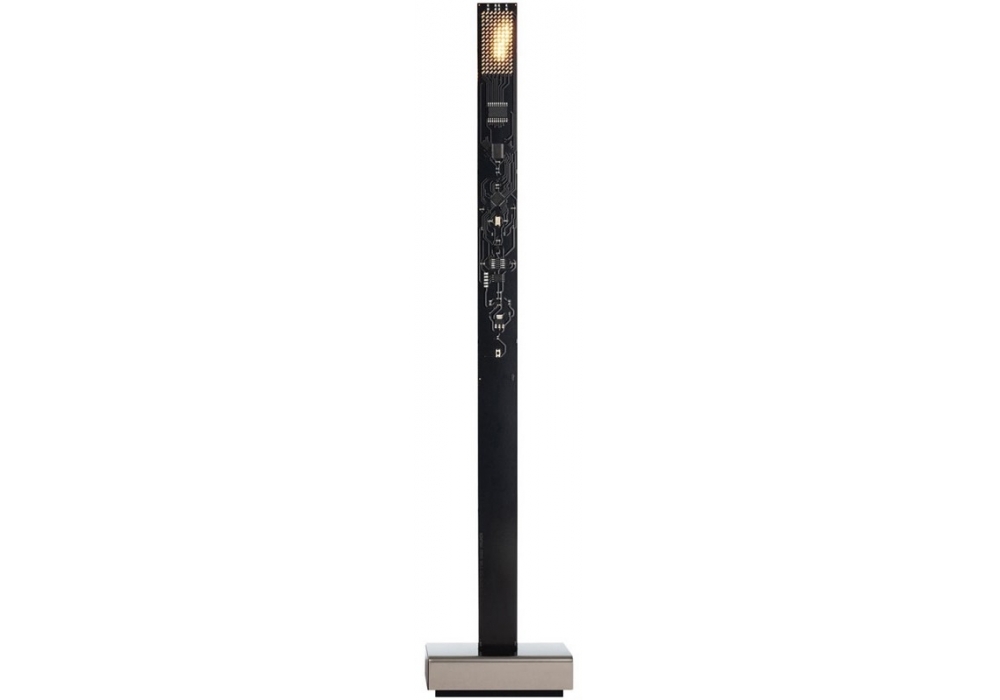 My New Flame USB, von Moritz Waldemeyer für Ingo Maurer entworfen, ist eine Tischleuchte mit Leiterplatte auf einer Struktur aus Metall und Kunststoff. Anhand eines Videos programmiert, reproduzieren die LEDs die Wirkung einer Kerzenflamme realistisch. Erhältlich in verschiedenen Ausführungen.