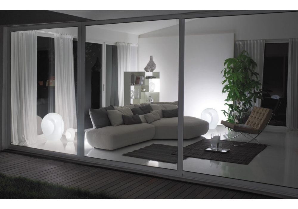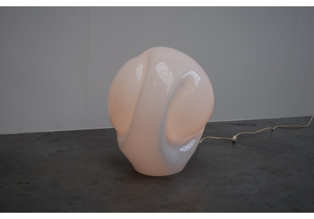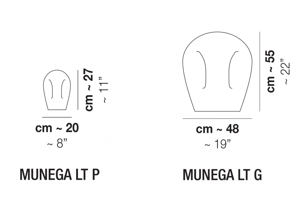 Munega entworfen von Luciano Vistosi, ist eine Tischlampe die vollständig aus handmodelliertem, weißem, mundgeblasenem Glas besteht. Als Lichtquelle wird eine E14- oder E27-LED- oder Halogen-Fassung mit Ein-/Aus-Schalter am Stromkabel verwendet. Munega ist in zwei verschiedenen Modellen erhältlich.