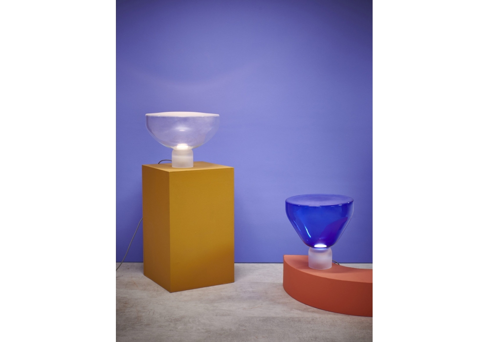 Lightline von Lucie Koldová für Brokis entworfen, ist eine strukturierte Tischleuchte, die vollständig aus mundgeblasenem Glas besteht. Der Diffusor hat je nach gewähltem Modell eine Becher- oder Kelchform und ist in verschiedenen Farben erhältlich. Die Basis hat eine zylindrische Form und Sie können zwischen dunklem Rauchgrau oder glänzend transparent oder geätzt wählen. Die verwendete Lichtquelle ist vom LED-Typ. Lightline ist in verschiedenen Ausführungen und Größen erhältlich.