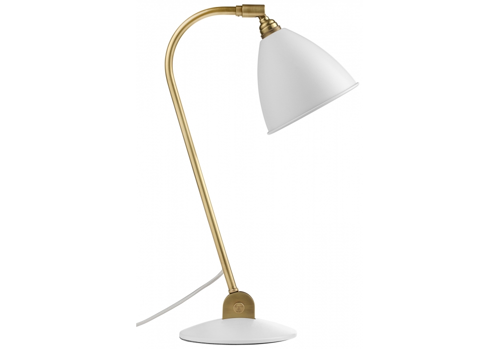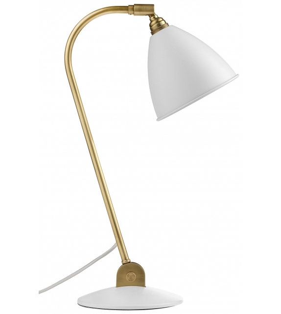 Bestlite BL2, von Robert Dudley Best für Gubi entworfen, ist eine Tischleuchte mit Struktur aus Chrom oder Messing. Schirm und Sockel sind aus pulverbeschichtetem Metall. Die Lampe kann um 90 Grad von horizontal nach vertikal geneigt werden. Der Schirm kann auch um 360 Grad gedreht werden.