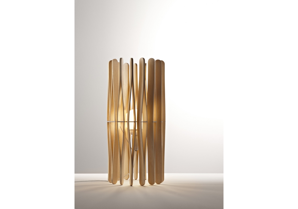 Stick F23 von Matali Crasset für Fabbian entworfen ist eine Tischleuchte durch sein innovatives Design aus. Das Licht wird diskret von einem Rahmen mit Latten von Ayous Holz dekoriert gestreut. Auch mit verschiedenen Lichtquellen. Schutz Index IP 20.