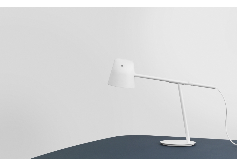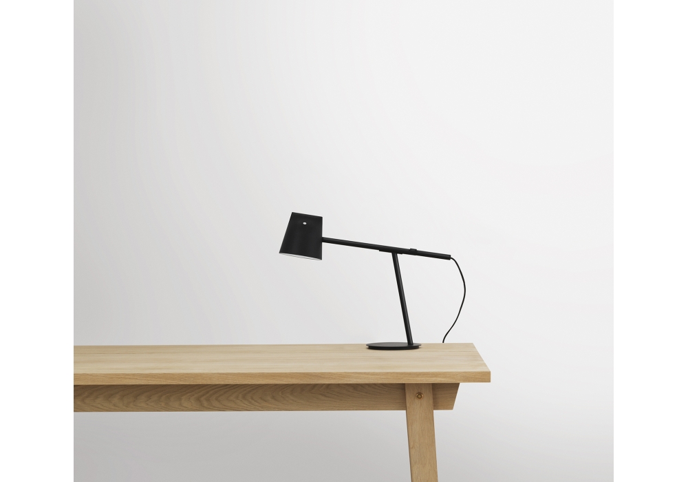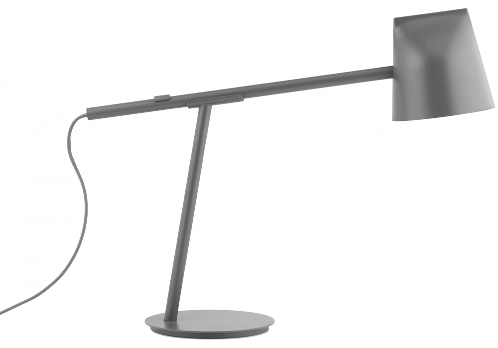 Momento von Daniel Debiasi & Frederico Sandris für Normann Copenhagen entworfen, ist eine Tischlampe mit rundem Sockel aus pulverbeschichtetem Metall. Strukturiert durch einen verschiebbaren Metallarm, um die richtige Position in Länge oder Tiefe zu haben, und einen drehbaren Kunststofflampenschirm, um das Licht auf den gewünschten Punkt zu lenken. Die Lichtquelle ist eine LED (im Lieferumfang enthalten), die von einem mit Textilfaser ummantelten Kabel in der gleichen Farbe wie die Lampe gespeist wird. Momento ist in der EU- (Europa) oder US-Version (USA) und in vier verschiedenen Farben erhältlich; schwarz, weiß, grau oder petrolgrün.