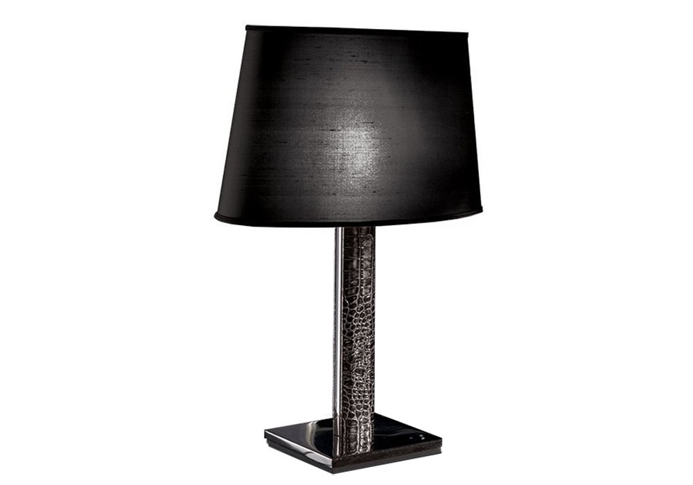 Akilele von Elle Studio für Longhi entworfen, ist eine Tischleuchte mit Berührungsschalter mit Metallstruktur, Säule aus Marmor oder mit Leder bezogen. Lampenschirm in verschiedenen Abmessungen und Ausführungen verfügbar.