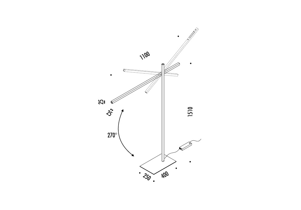 Hashi von Federico Delrosso für Davide Groppi entworfen, ist eine Stehleuchte mit viereckiger Basis und vertikalem Stab aus lackiertem Metall. Der Oberarm ist verstellbar und nimmt eine dimmbare LED-Lichtquelle auf. Hashi ist in verschiedenen Ausführungen und Lichtschattierungen erhältlich.