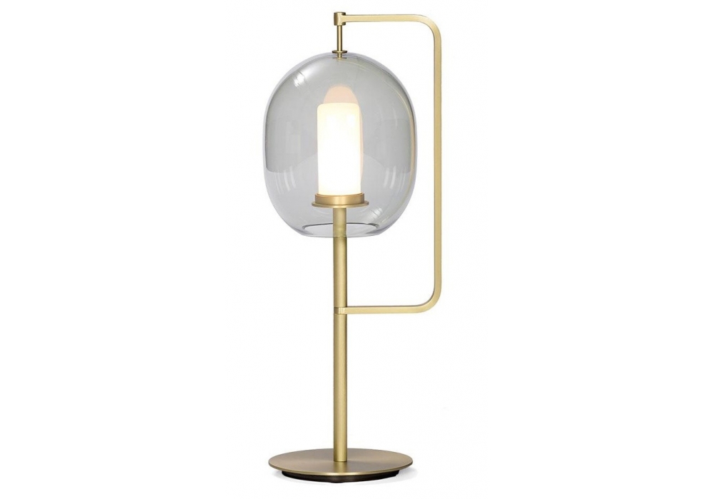 Lantern Light, von Neri&Hu für ClassiCon entworfen, ist einer Tischleuchte mit Gestell aus massivem Messing, natur oder brüniert, klar lackiert. Lampenschirm aus mundgeblasenem Kristallglas in Grau. Diffusor aus Opalglas, weiß satiniert. Filzgleiter.