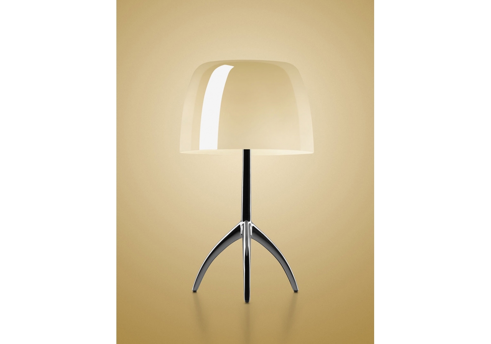 Lumiere von Rodolfo Dordoni für Foscarini entworfen, ist eine Tischleuchte mit tragender Struktur und Sockel aus gebürstetem und lackiertem Aluminium. Der Diffusor ist kreisförmig aus mundgeblasenem Glas und schirmt eine nachrüstbare LED-Lichtquelle ab, die von einem transparenten Kunststoffkabel gespeist wird. Lumiere ist in verschiedenen Modellen und Ausführungen erhältlich.