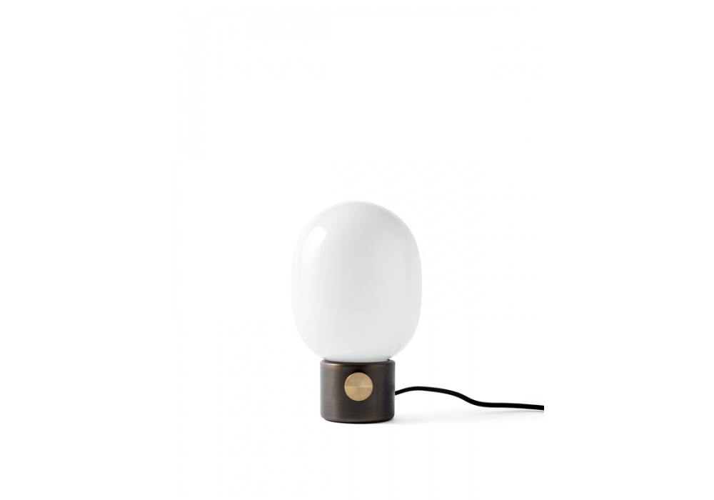 JWDA Metallic von Jonas Wagell für Audo Copenhagen entworfen, ist eine Tischleuchte mit Glasdiffusor, Dimmer und Sockel, verfügbar in verschiedenen Ausführungen.
