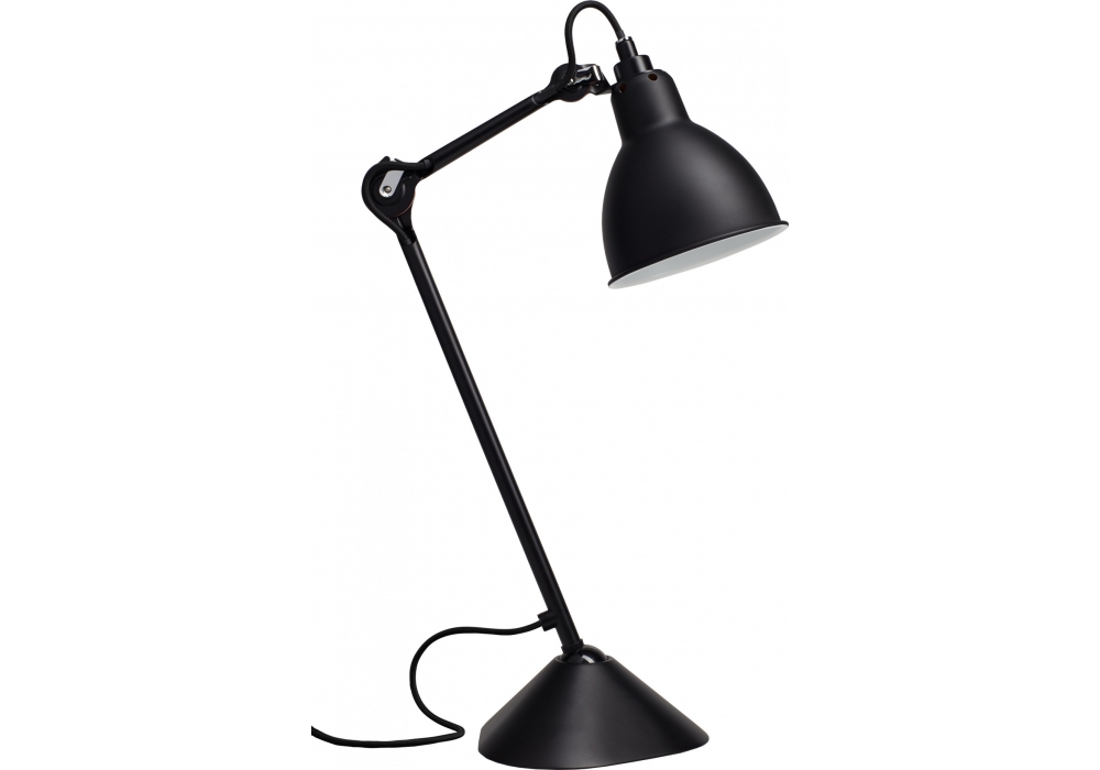 N°205 von Bernard-Albin Gras für DCW Éditions entworfen, ist eine Tischleuchte mit Struktur und Fuß aus schwarzem Stahl und Diffusor verfügbar in 2 Formen und verschiedenen Ausführungen. Heute ist diese Lampe ein begehrtes Sammlerstück auf der ganzen Welt, vor allem in Frankreich, in den USA und in Japan. Das talentierte und visionäre Design von Bernard Albin Gras hat sich als zeitlos erwiesen.