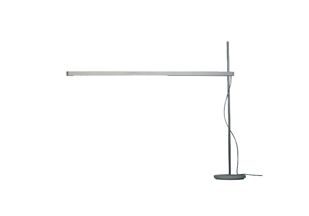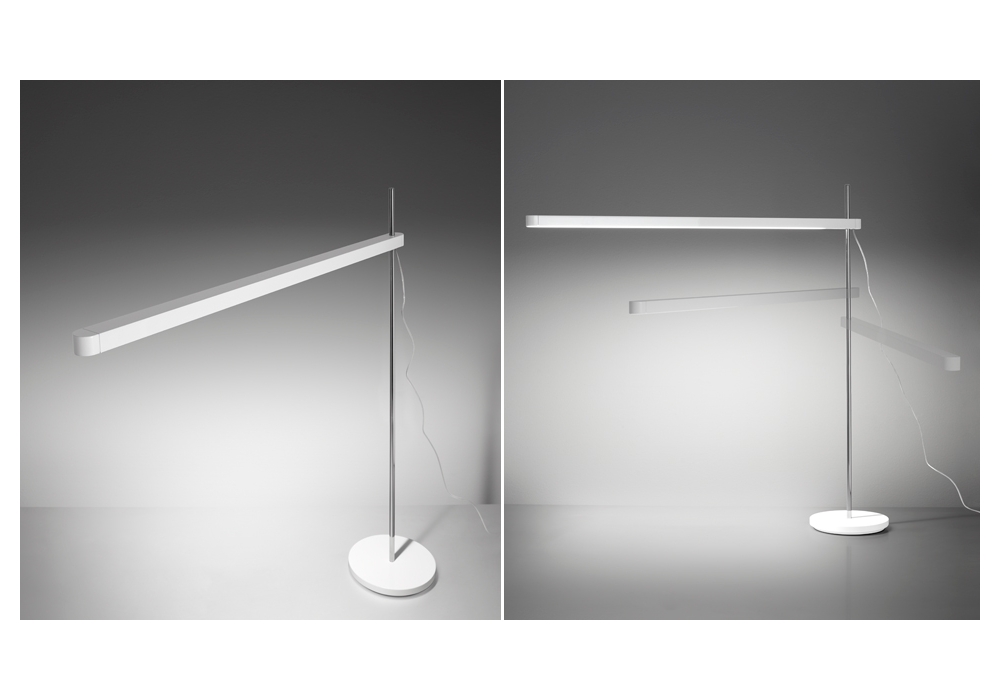 Talak Professional entworfen von Neil Poulton für Artemide ist eine Tischleuchte mit Lampenkörper aus weißem Kunststoff und Stützstange aus verchromtem Stahl. Als Lichtquelle kommt LED mit dimmbarem System zum Einsatz. Talak Professional ist in zwei Versionen erhältlich: mit weiß lackiertem Sockel oder mit polierter Aluminiumklemme.