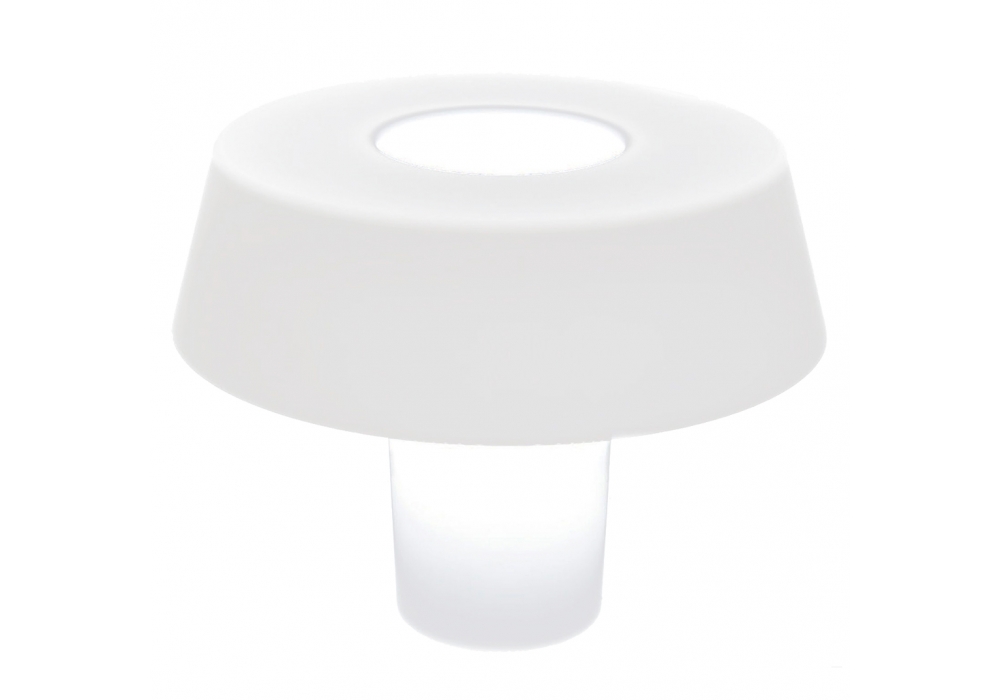 Amami, von Naoto Fukasawa für Artemide entworfen, ist eine runde Tischlampe, die vollständig aus weißem Polycarbonat besteht. Die verwendete Lichtquelle ist LED.