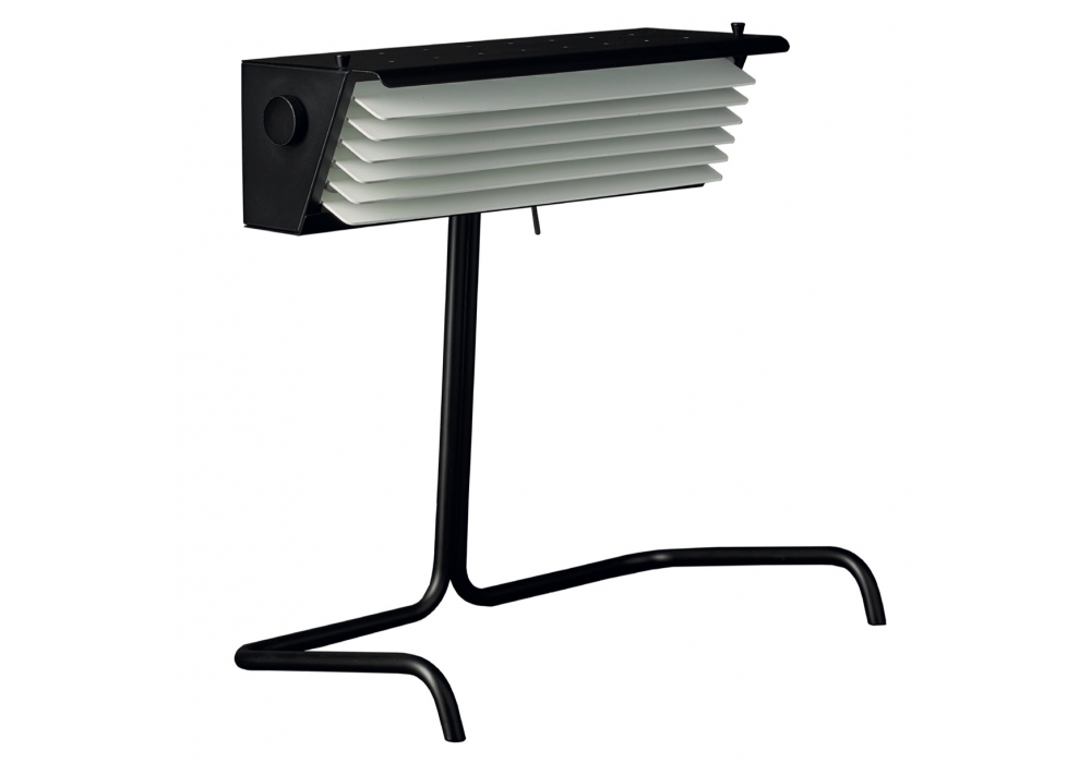 Biny Table von Jacques Biny für DCW Éditions entworfen, ist eine Tischleuchte mit schwarzer Struktur und weißem Diffusor. Effizienz und Einfachheit, Zurückhaltung, Eleganz und Bescheidenheit sind die gemeinsamen Nenner in Jacques Binys Arbeit.