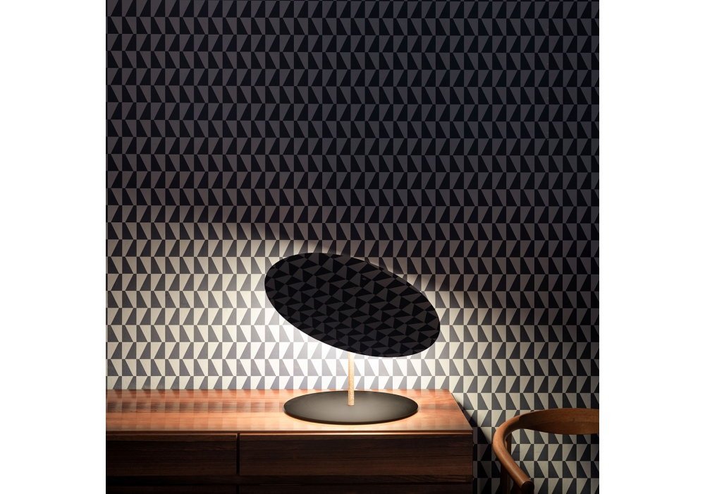 Calvino entworfen und hergestellt von Davide Groppi, ist eine Tischlampe, die sich durch einen verstellbaren runden Spiegel mit Messing-Stiel und einem runden Sockel aus mattschwarz lackiertem Metall auszeichnet. Die gewählte Lichtquelle ist vom Typ LED mit Dimmer am Netzkabel.