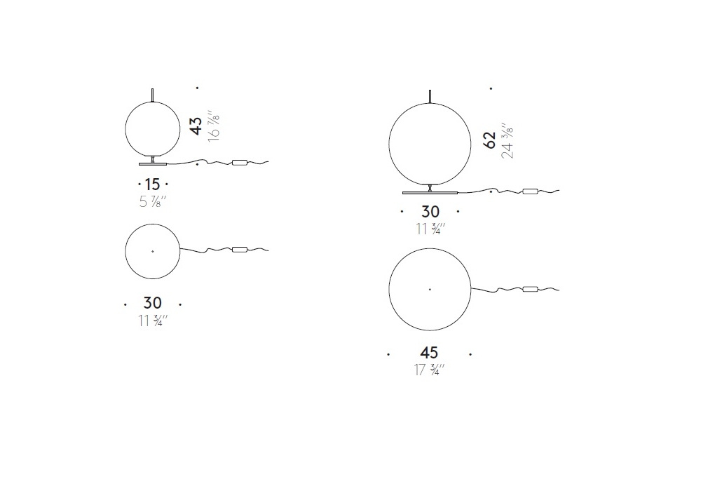 | Abmessungen | Ø 30 x H 43 cm - 16W; Ø 45 x H 62 cm - 32W. |
