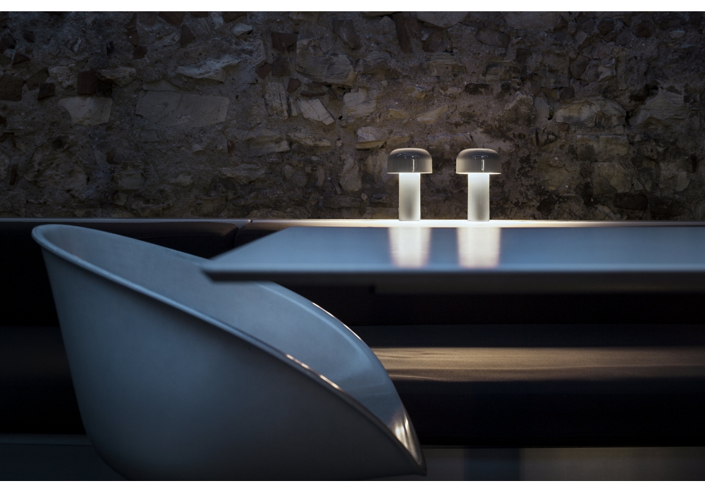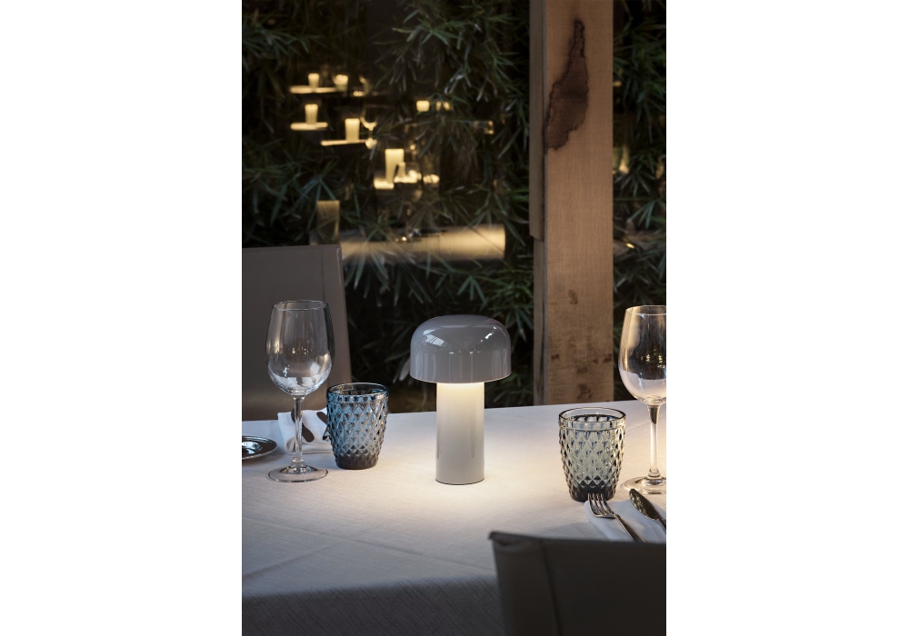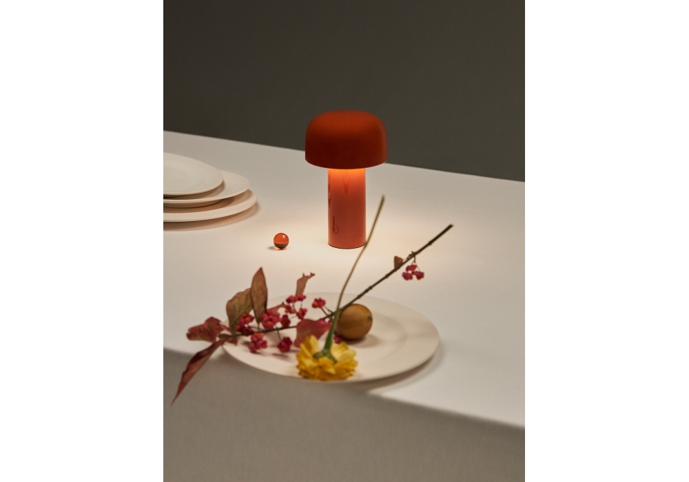 Bellhop von Edward Barber & Jay Osgerby für Flos entworfen, ist eine wiederaufladbare Tischleuchte mit direktem Licht. Sockel und Kuppel aus farbigem PC. Diffusor aus opalfarbenem, fotograviertem, spritzgegossenem PC. Akkulaufzeit bis zu maximal 24 Stunden, Aufladen über Micro-USB-C. Ein Druckknopfschalter am Sockel ermöglicht die 4-stufige Dimmfunktion. Eine Batteriestandsanzeige befindet sich unter dem Sockel. USB-C-Ladekabel im Lieferumfang enthalten. LED-Leuchtmittel enthalten.