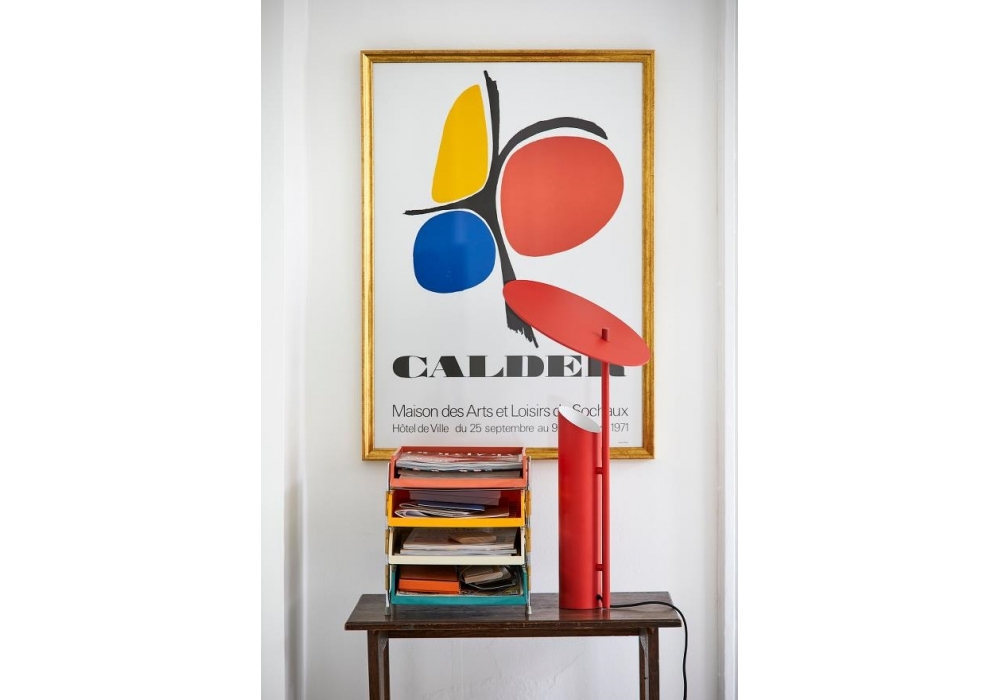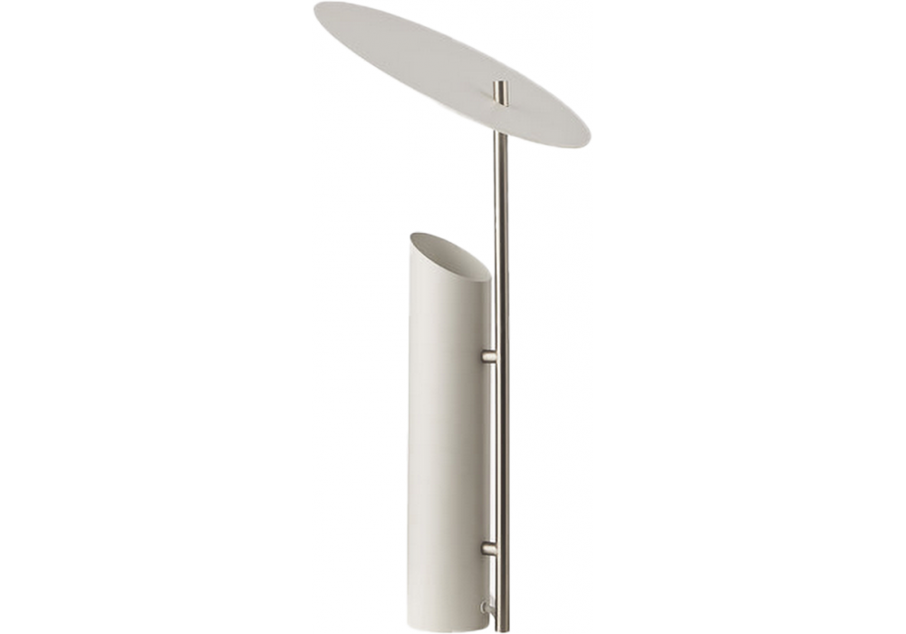 Reflect von Verner Panton für Verpan entworfen, ist eine Tischleuchte mit geneigtem Lampenschirm. Struktur aus pulverbeschichtetem Stahl, erhältlich in verschiedenen Ausführungen, mit weißer unterer Scheibenoberfläche für optimale Reflexion.