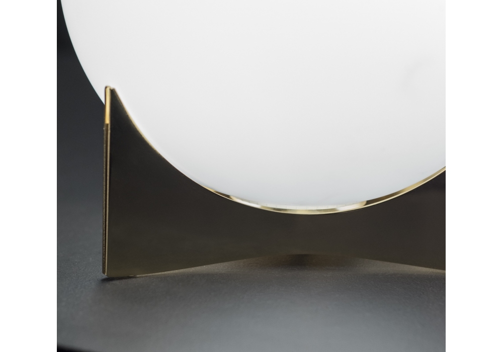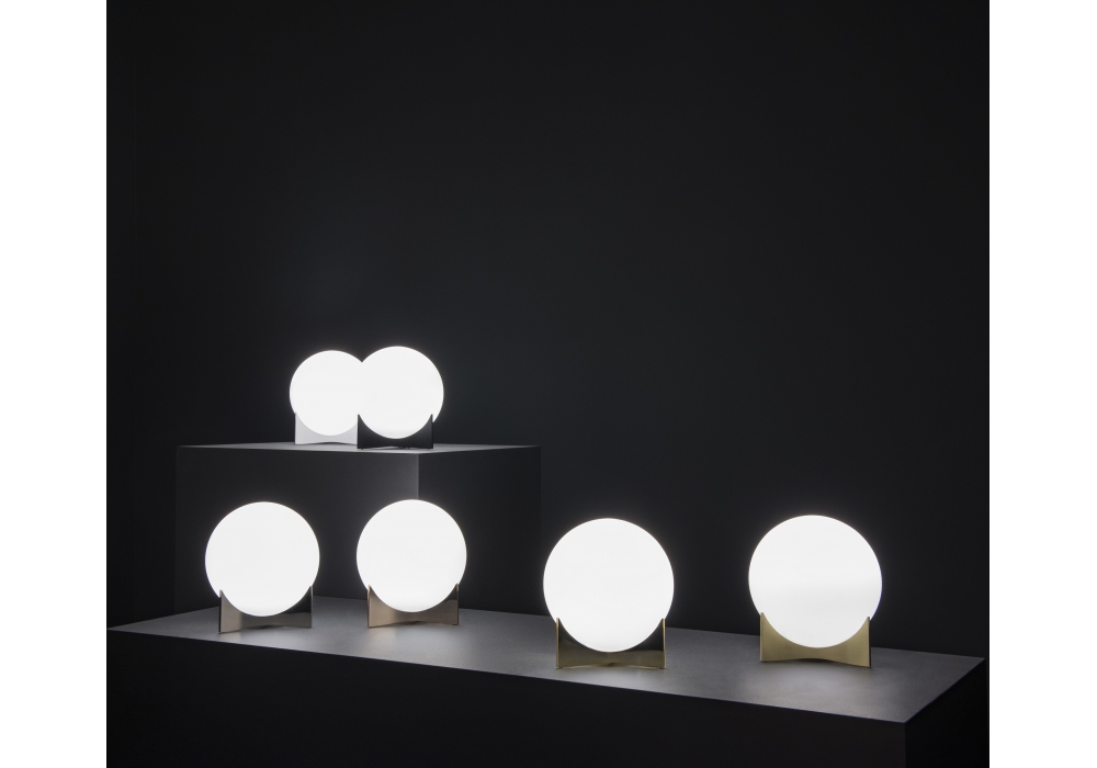 Oscar, von Dodo Arslan für Terzani entworfen, ist eine Tischlampe mit gebogener Basis aus Messing und kugelförmigem Diffusor aus Opalglas. Als Lichtquelle dient eine dimmbare LED mit Textilfaser-Stromkabel. Oscar ist in verschiedenen Ausführungen erhältlich.