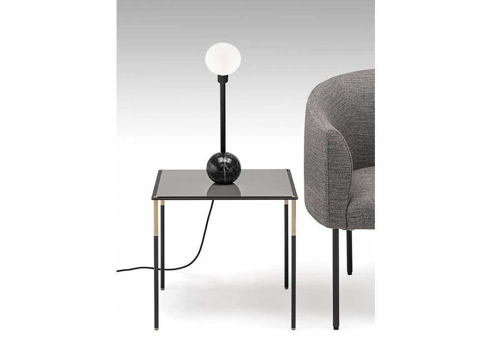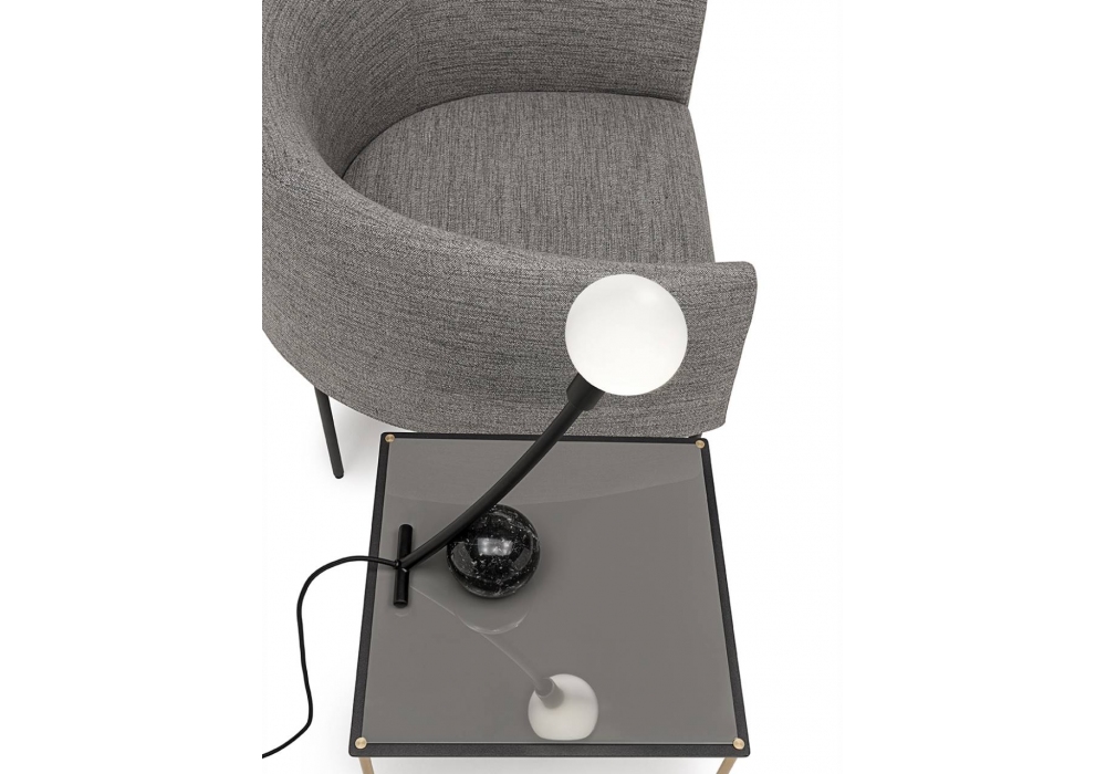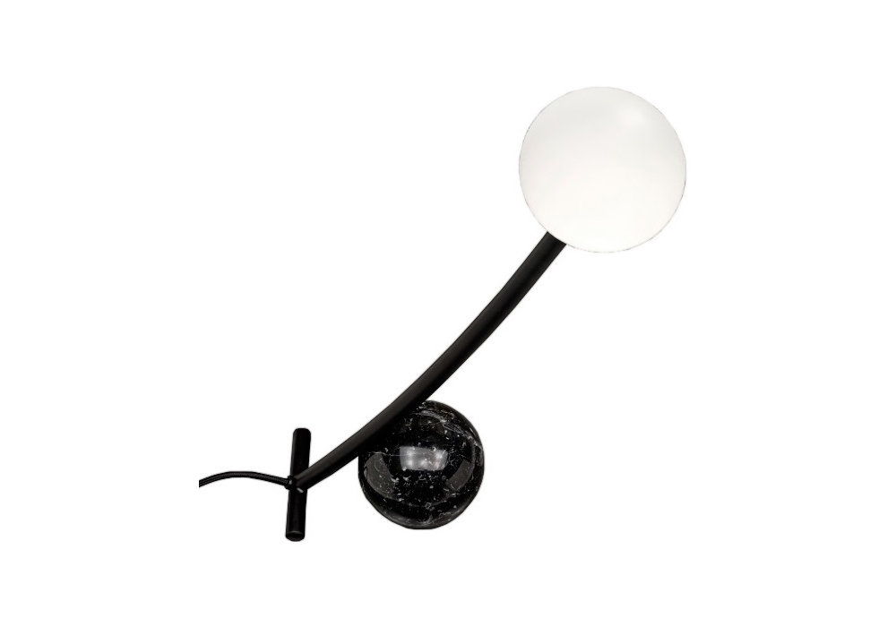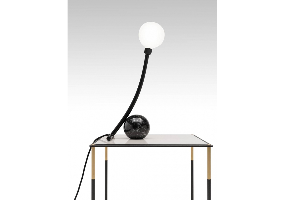 Materica von Leonardo Talarico für Living Divani entworfen, ist eine Tischleuchte mit sphärischem Fuß aus Weiß Carrara, Rosso Levanto oder Nero Marquina Marmor und eine Körperlampe aus Stahl. Diffusor aus Opal Borosilikatglas, der durch Federkopplung am Leuchtenkörper befestigt ist.