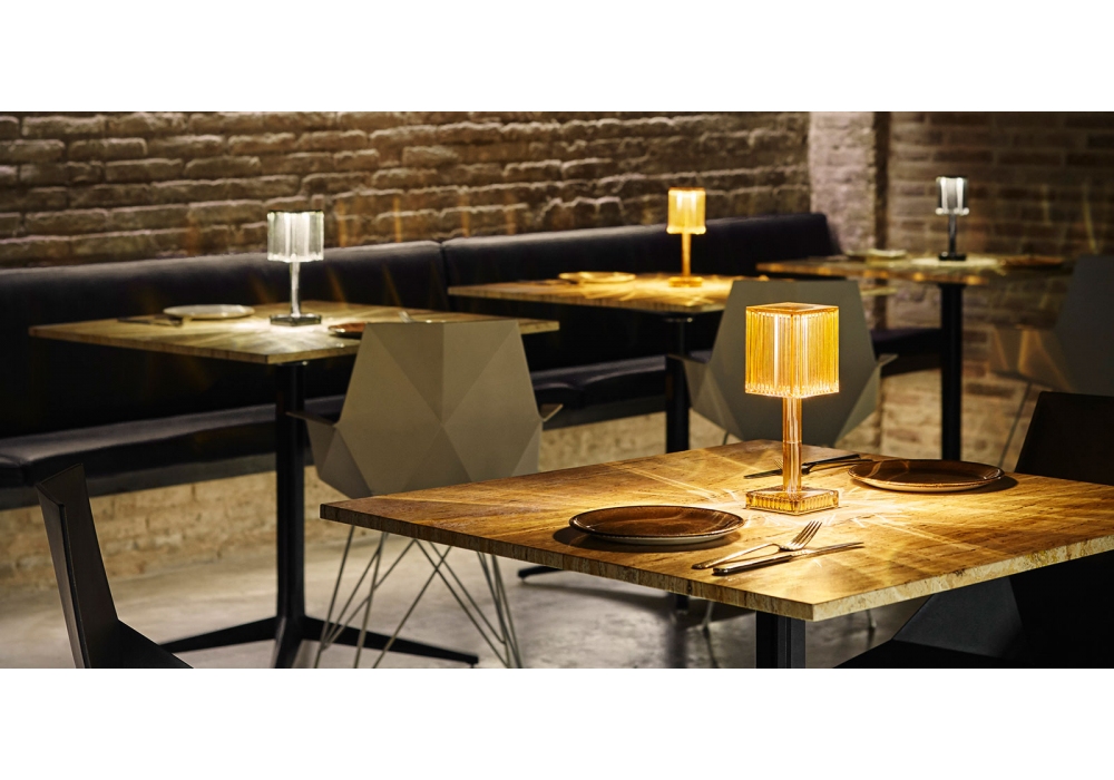 Gatsby Prisma von Ramón Esteve für Vondom entworfen, ist eine Tischleuchte aus Glas, verfügbar in 3 Ausführungen. Die einstellbare Lichtintensität und die Möglichkeit, die projizierte Farbe zu wählen, machen Gatsby zur perfekten Lampe, um eine außergewöhnliche Atmosphäre zu schaffen. LED-Beleuchtung.
