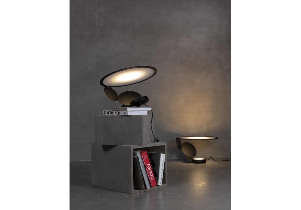 Cut von Timo Ripatti für Axo Light entworfen, ist eine Tischleuchte mit Metallstruktur aus Aluminium und Stahl. Leuchtenkörper in drei verschiedenen Positionen montierbar. Verfügbar in schawrzer Farbe. Dimmbare integrierte LED-Lichtquelle.