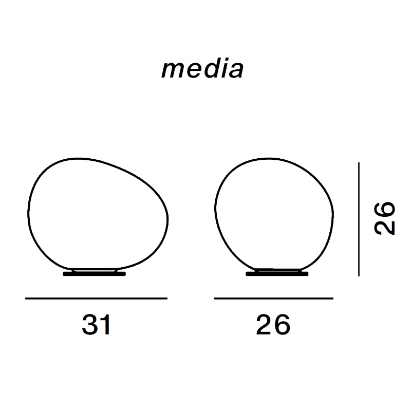 | Watt | 1 x 150 W. Halo (Grande, Media); 1 x 6 W. LED (Midi) 1 x 8 W. LED (Piccola) |