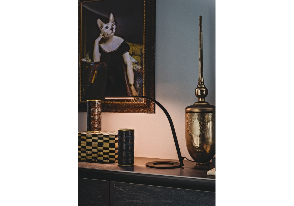 Lampo, von Paolo Cattelan für Cattelan Italia entworfen, ist eine Tischleuchte aus Stahl, verfügbar in verschiedenen Ausführungen. Mit Schalter.