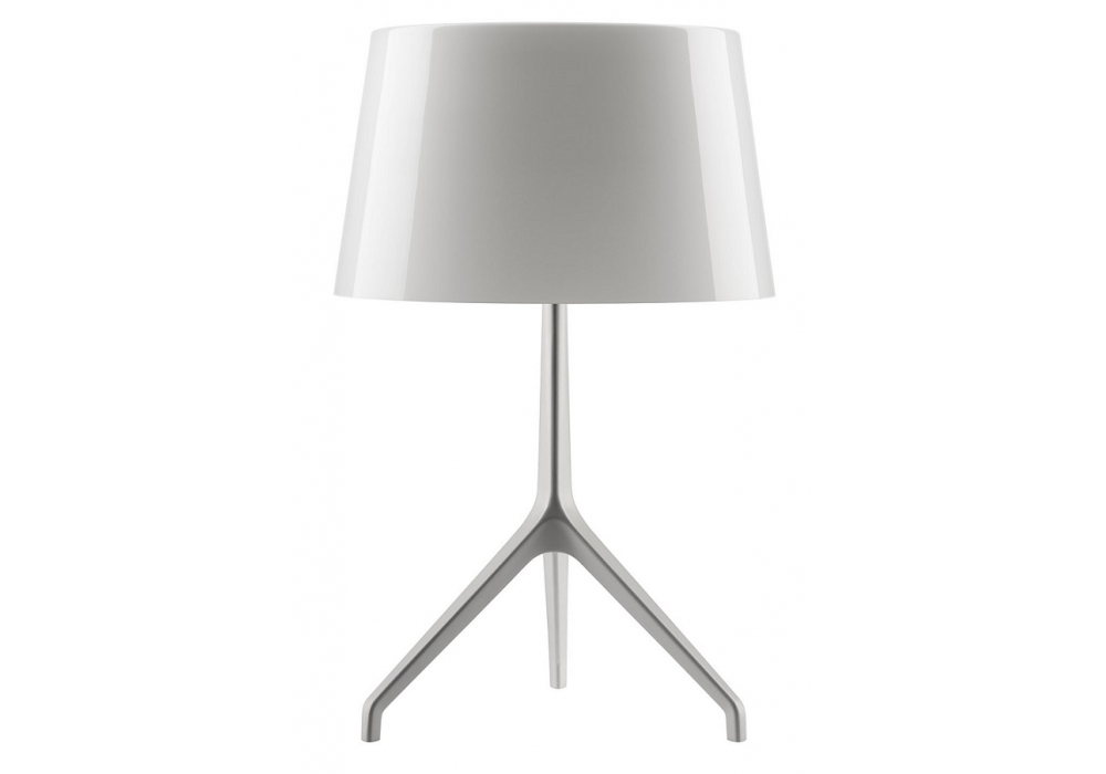 Lumiere XXL von Rodolfo Dordoni für Foscarini entworfen, ist eine Tischleuchte mit dreibeiniger Struktur aus gebürstetem oder lackiertem Aluminium. Der Lampenschirm ist aus mundgeblasenem Glas und schirmt eine LED- oder Halogenlichtquelle mit einem G9-Anschluss ab, der von einem transparenten Kunststoffkabel gespeist wird. Lumiere XXL ist in verschiedenen Ausführungen erhältlich.