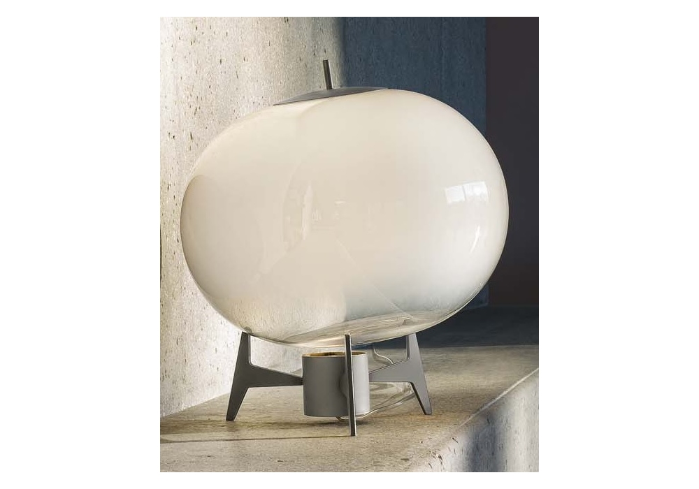 Antartic von Marc Sadler für Olev entworfen, ist eine LED-Tischleuchte mit Diffusor aus geblasenem Glas und Stahlsockel. Driver enthalten.