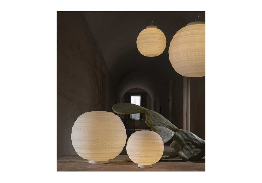 Braille von Matteo Ugolini für Karman entworfen, ist eine Tischlampe aus satinweißem Glas mit Sockel aus opakem Weißmetall. Lampe nicht enthalten.