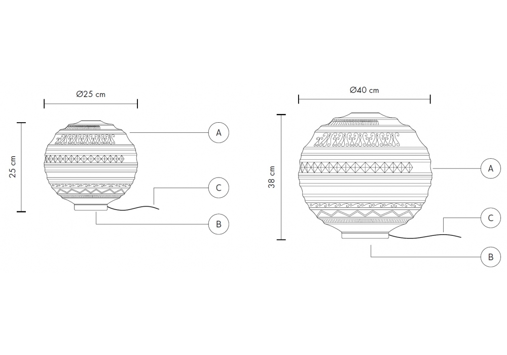 | Abmessungen | • Ø 25 x H 25 cm; • Ø 40 x H 38 cm |