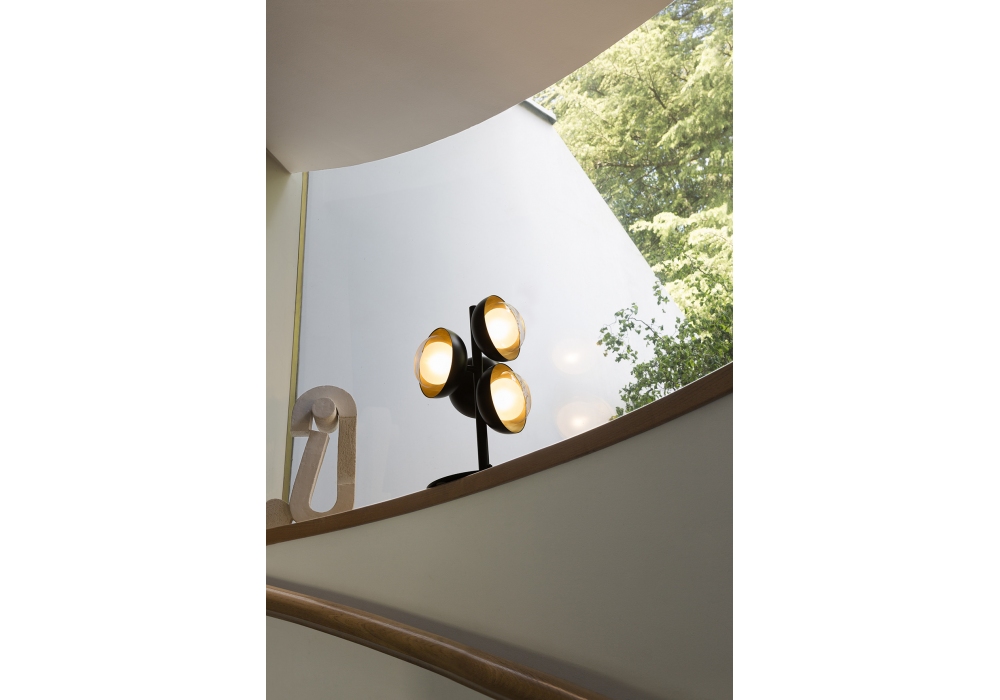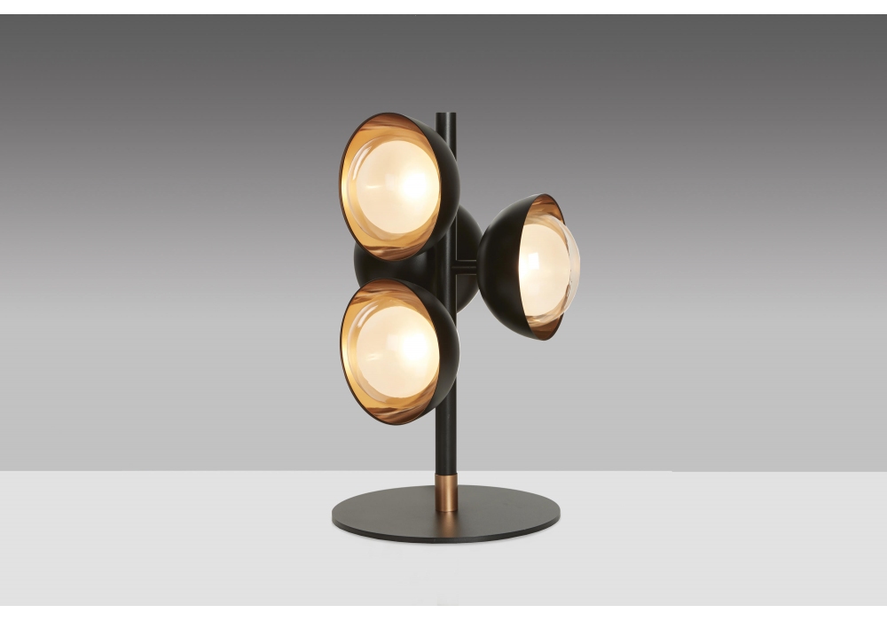 554 Muse von Corrado Dotti für Tooy entworfen, ist eine Tischlampe mit sandschwarzer Metallstruktur und doppeltem Glaslampenschirm mit unterschiedlicher Innenkuppel. Diese Tischleuchte ist auch mit integriertem Dimmer am Kabel erhältlich. Glühbirne nicht enthalten.