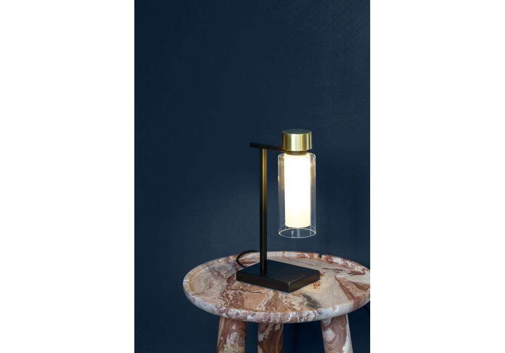 560 Osman von Corrado Dotti für Tooy entworfen, ist eine Tischlampe, die durch Details aus gebürstetem Messing und einen doppelwandigen Diffusor aus transparentem Glas oder Details aus schwarzem Chrom und einen Schirm aus Rauchglas bereichert wird. Es ist in 2 Modellen erhältlich. Das größere Modell ist auch mit integriertem Dimmer am Kabel erhältlich.