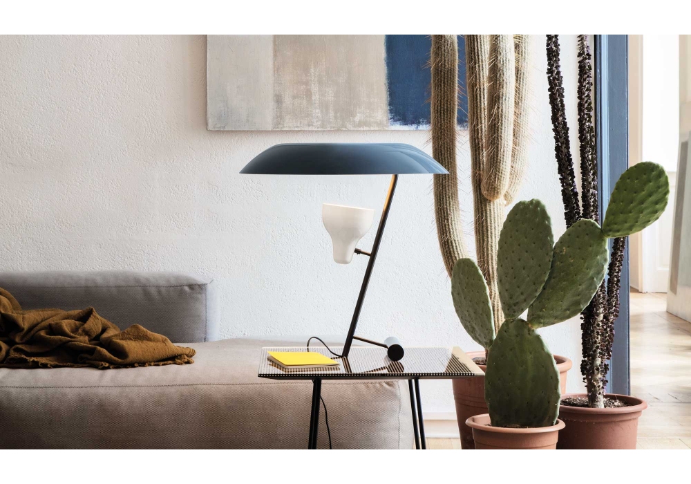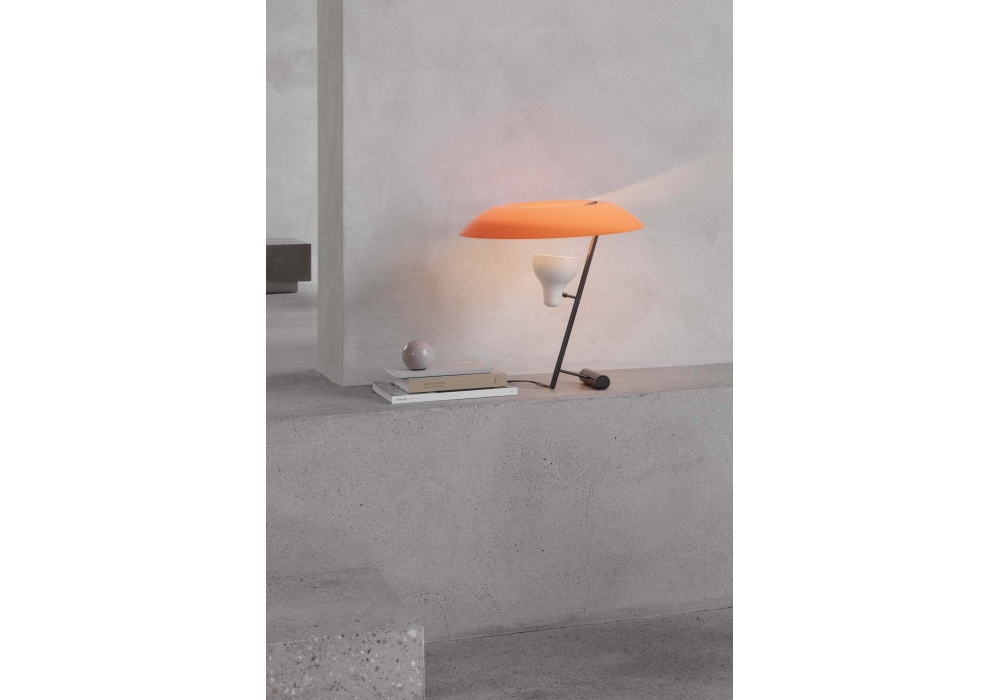 Model 548 von Gino Sarfatti für Astep entworfen, ist eine Tischlampe mit einer Struktur aus Messing (matt oder glänzend) und einem Diffusor aus Opalmethacrylat. Erhältlich in verschiedenen Farbvarianten.