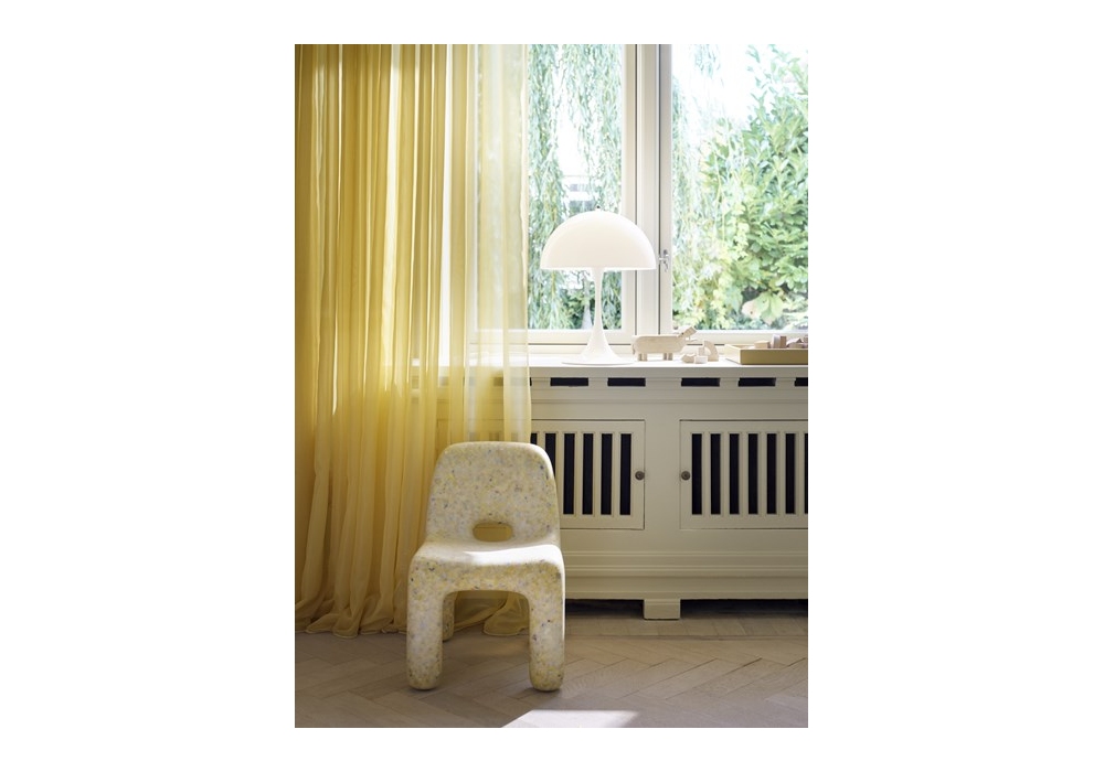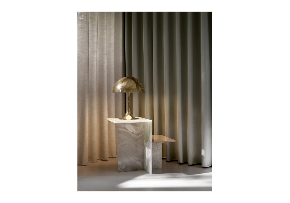 Panthella 320 von Verner Panton für Louis Panton entworfen, ist eine Tischleuchte mit tragender Struktur aus Aluminium-Druckguss. Der Schirm besteht aus Acryl, während der Diffusor aus opalem PMMA besteht und eine LED- oder Halogen-Lichtquelle mit E14-Fassung abschirmt. Panthella 320 ist in verschiedenen Ausführungen erhältlich.