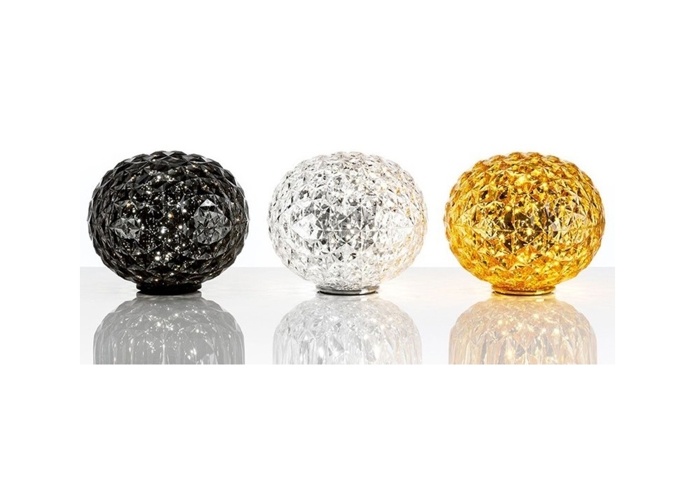 Mini Planet von Tokujin Yoshioka für Kartell entworfen, ist eine Tischleuchte mit Struktur aus metallisiertem thermoplastischem Technopolymer und Diffusor aus PMMA. Verfügbar in verschiedenen Ausführungen und 2 Versionen.