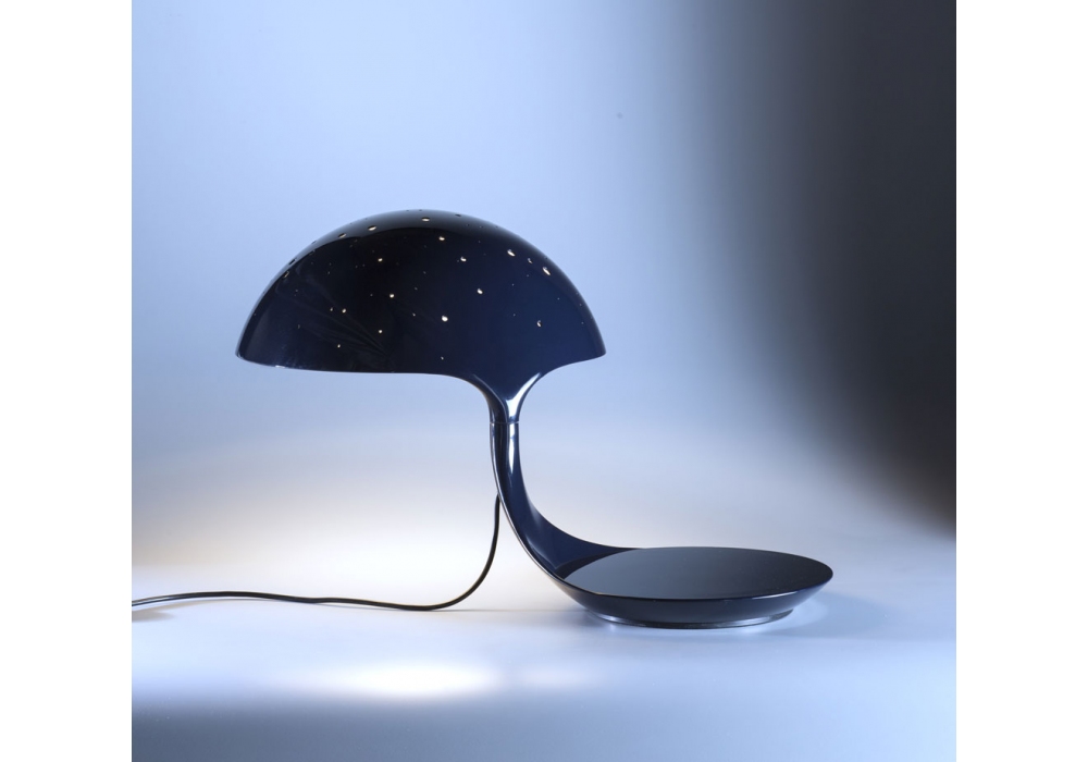 Cobra Scorpius, von Elio Martinelli für Martinelli Luce entworfen, ist eine Tischleuchte mit drehbarem Arm, der vollständig aus Kunststoff besteht. Der abgerundete Diffusor zeichnet sich durch verschiedene Löcher aus und schirmt eine Lichtquelle vom LED-Typ ab. Cobra Scorpius ist in einem einzigen nachtblauen Finish erhältlich.