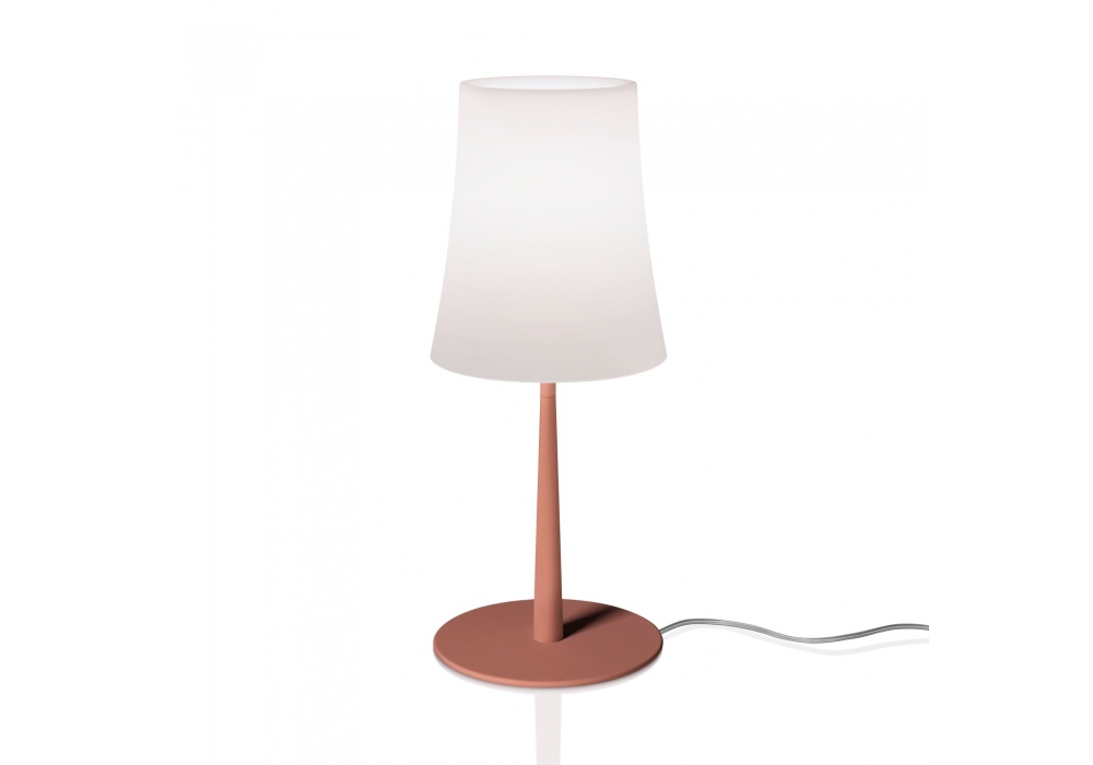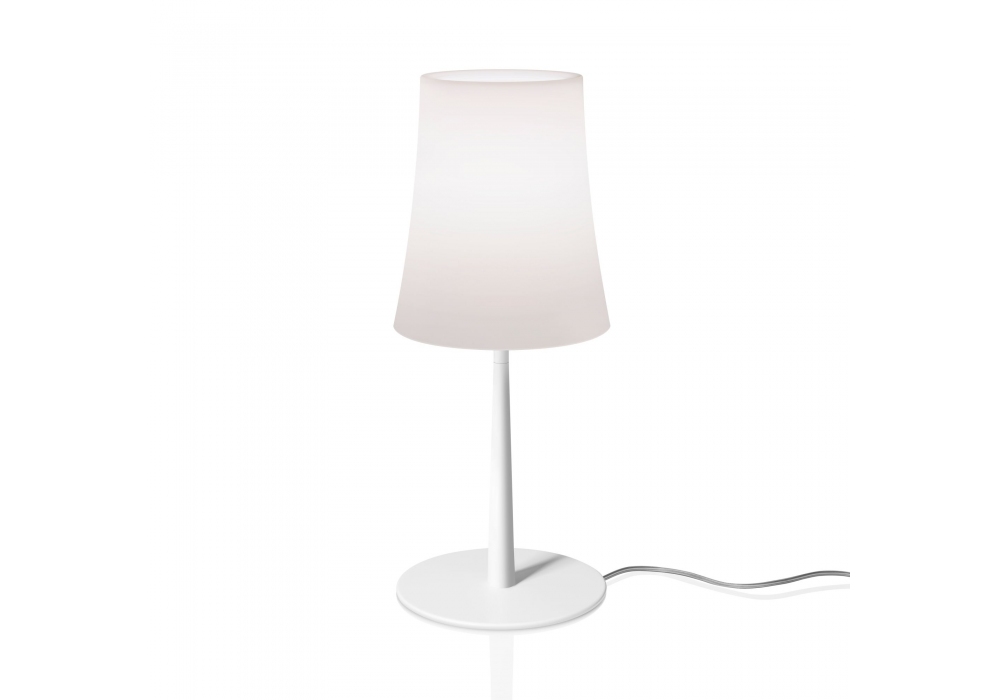 Birdie Easy, von Ludovica & Roberto Palomba für Foscarini entworfen, ist eine Tischlampe mit tragender Struktur aus Metall und runder Basis. Der Diffusor hat eine runde Form aus Polycarbonat und schirmt eine LED- oder Halogenlichtquelle mit E27-Fassung ab. Birdie Easy ist in verschiedenen Größen und Ausführungen erhältlich.