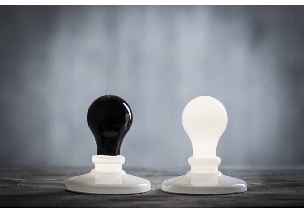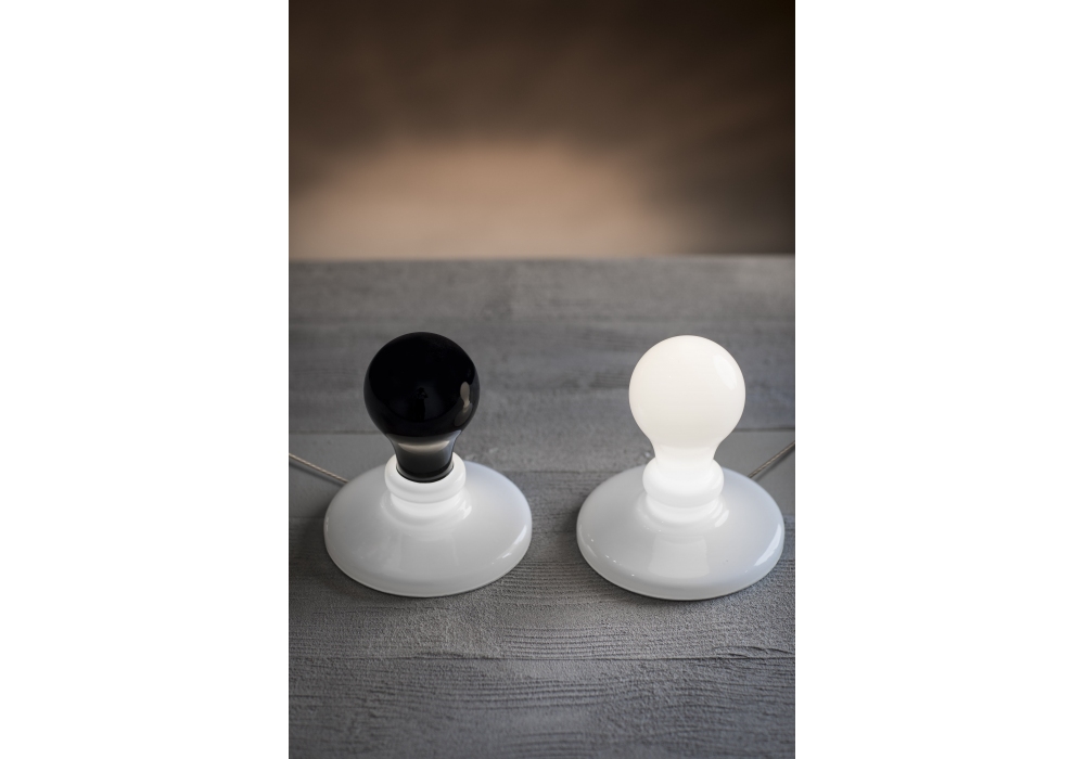 Light Bulb von James Wines / SITE für Foscarini entworfen, ist eine Tischlampe mit einem runden Sockel, der durch die Kombination von geblasenem Glas und Aluminium strukturiert wird. Die verwendete Lichtquelle ist eine dimmbare LED, die von einem transparenten Kunststoffkabel gespeist wird. Light Bulb ist in verschiedenen Ausführungen erhältlich.