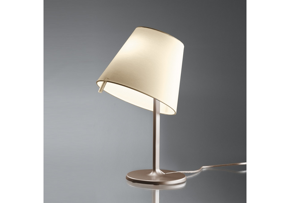 Melampo Notte entworfen von Adrien Gardère für Artemide ist eine Tischleuchte die aus einem runden Sockel aus Zamak und einem vertikalen Stab aus lackiertem Aluminium besteht. Der Lampenschirm besteht aus Satin und ist mit einem Diffusor aus Technopolymer verstellbar. Die verwendete Lichtquelle ist vom Typ LED. Melampo Notte ist in verschiedenen Ausführungen erhältlich.