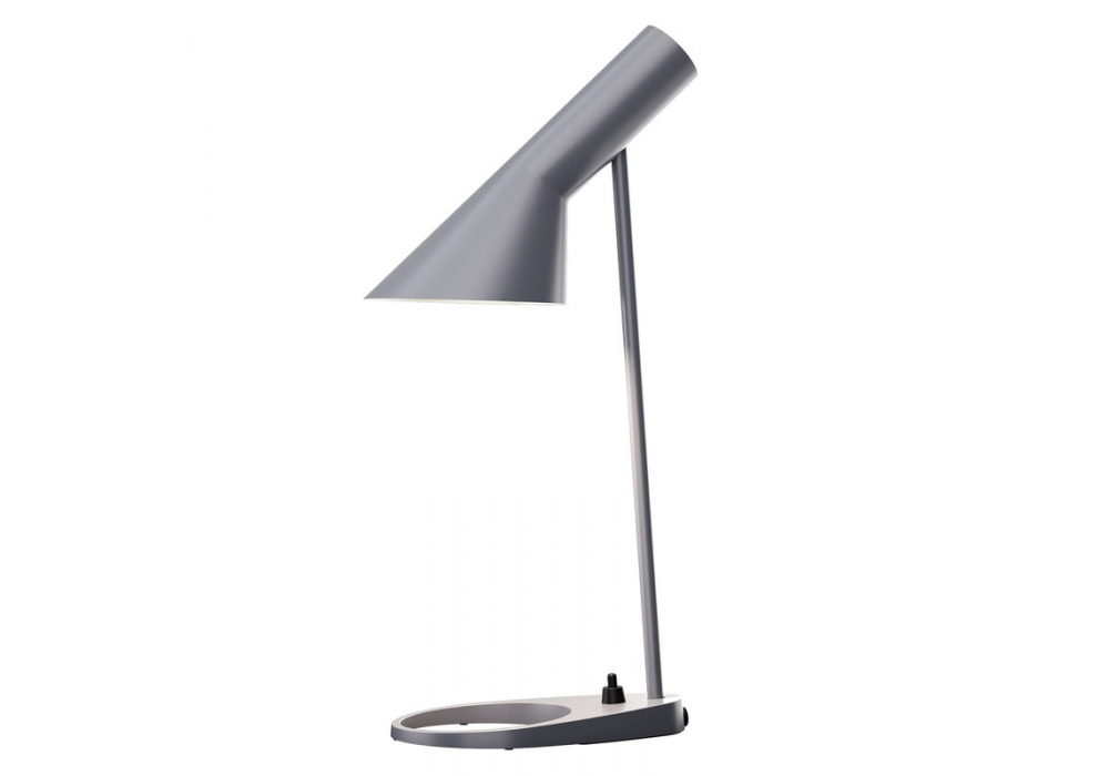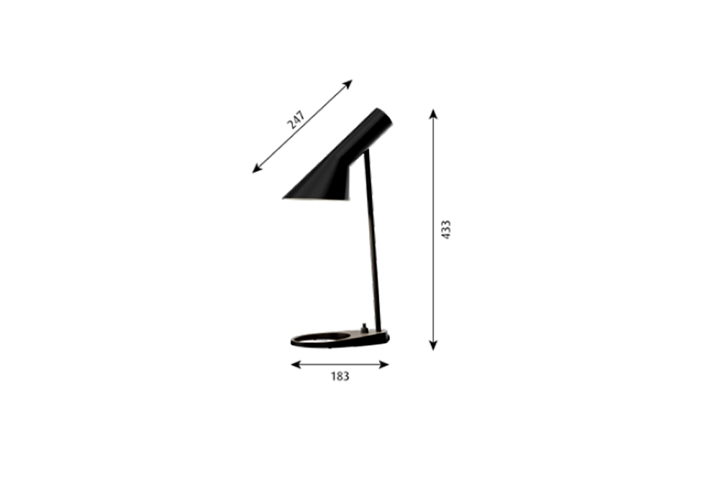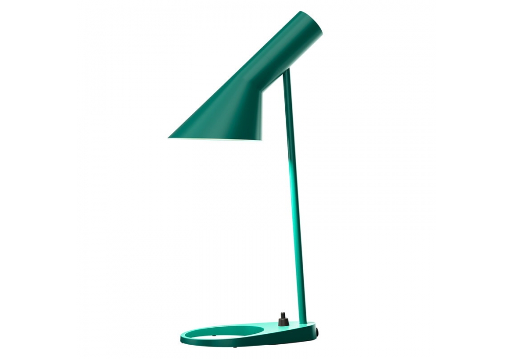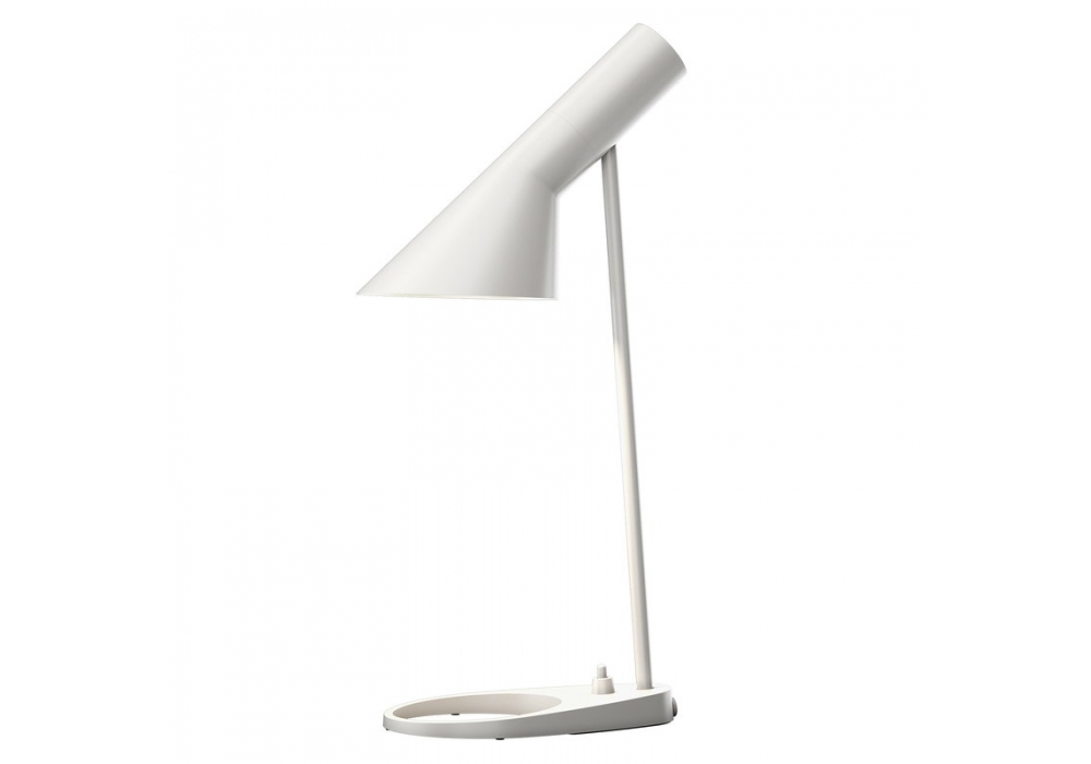 AJ Mini von Arne Jacobsen für Louis Poulsen entworfen, ist eine Tischleuchte mit Sockel aus Zinkdruckguss oder Edelstahl, vertikalem Stab aus Edelstahl. Der Diffusor besteht aus Stahl und schirmt eine LED- oder Halogen-Lichtquelle mit E14-Fassung ab. AJ Mini ist in verschiedenen Ausführungen erhältlich.