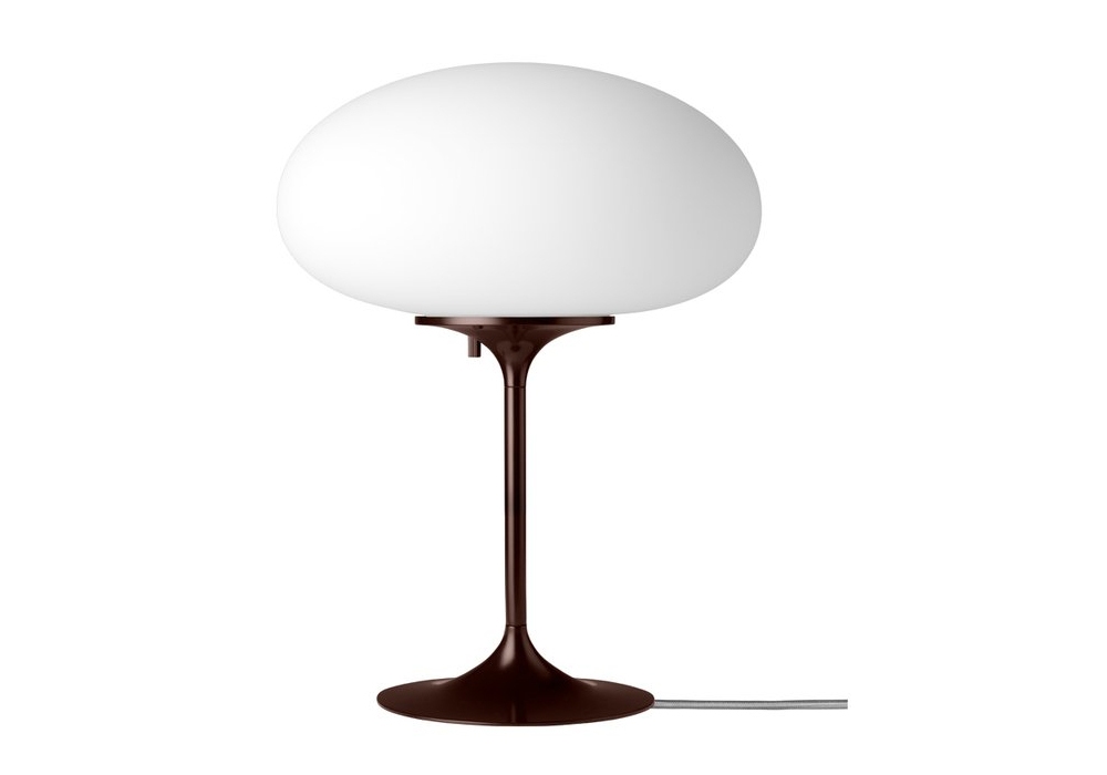 Stemlite von Bill Curry für Gubi entworfen, ist eine Tischleuchte bestehend aus Metallsockel und mattiertem Glasschirm.