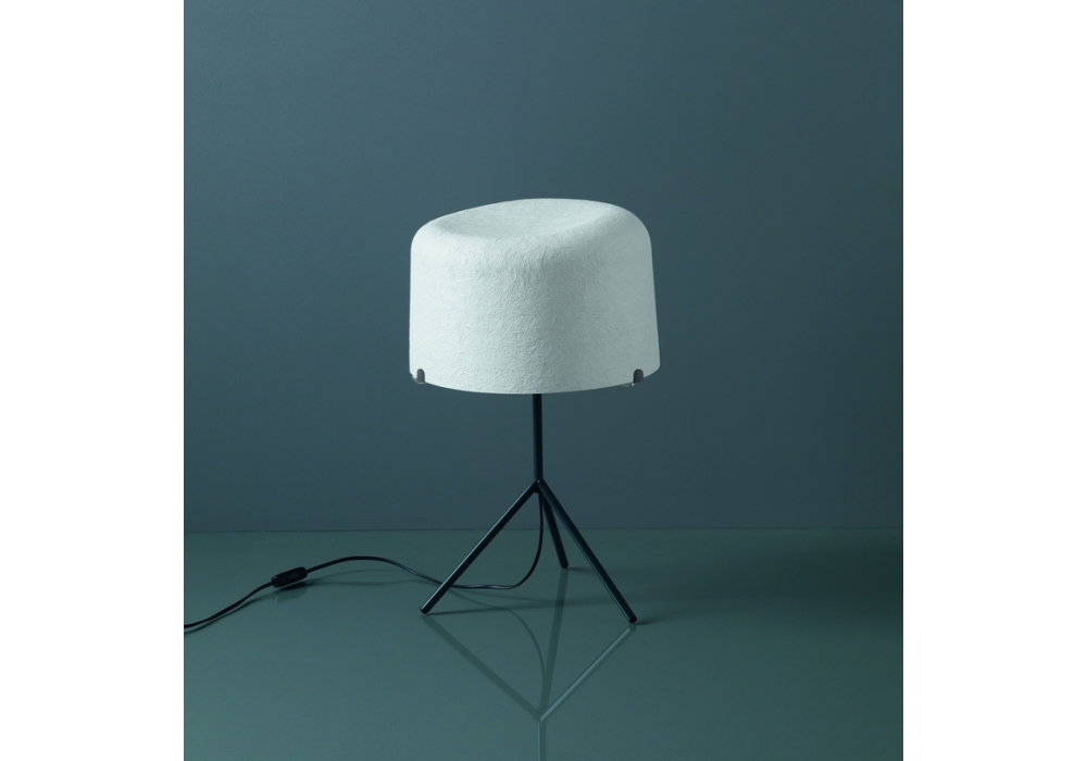 Ola von Enrico Franzolini für Quadrifoglio Group entworfen, ist eine Tischleuchte mit Lampenschirm aus Fiberglas verfügbar in verschiedenen Ausführungen und Metallstruktur mit schwarzer Goffratino-Lackierung.