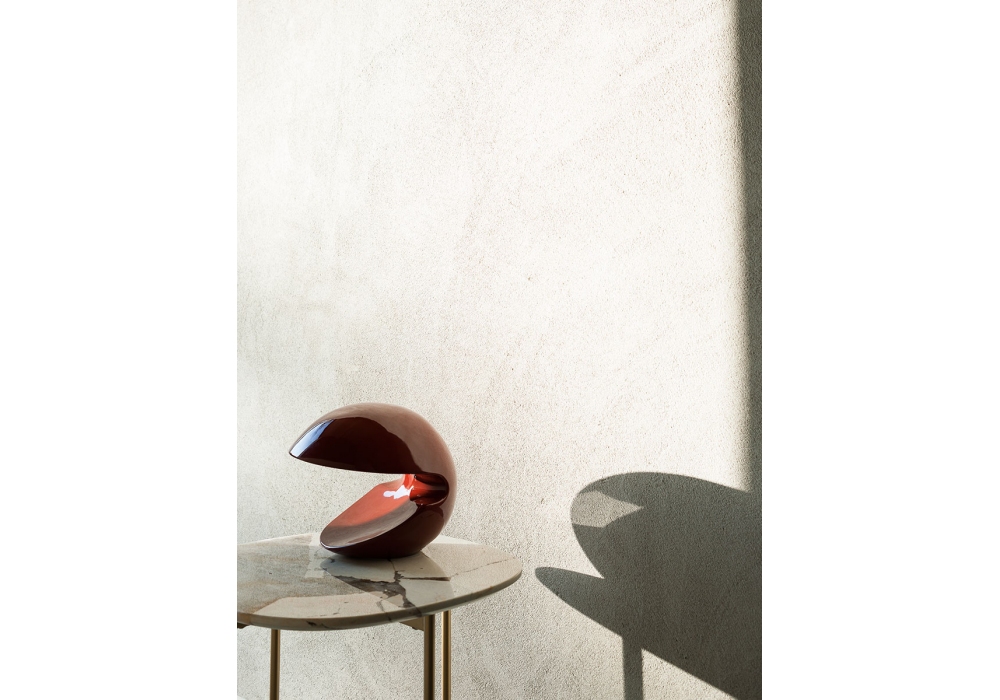Miss Pack von Alvino Bagni entworfen, ist eine Tischleuchte mit glasierter Keramikstruktur, hergestellt mit einer Gipsform. Es wird zweimal gebrannt: das erste bei 1050 ° C, um die Keramik härter zu machen, und das zweite bei 970 ° C, um die Farbe zu trocknen. Erhältlich in zwei Ausführungen.