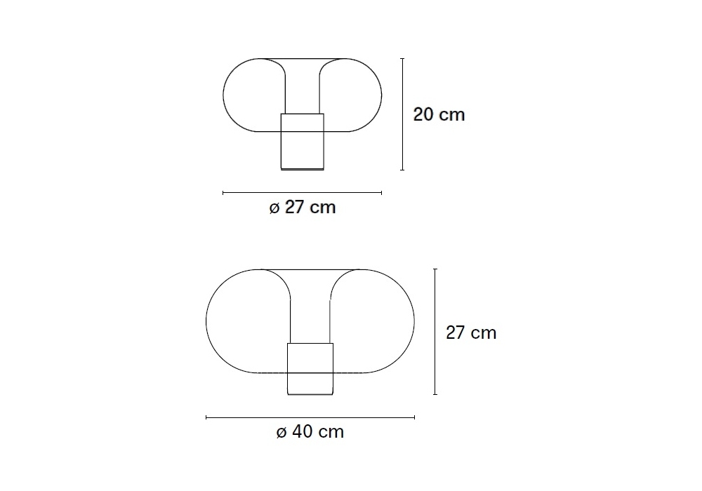 | Abmessungen | Ø 27 x H 20 cm; Ø 40 x H 27 cm. |