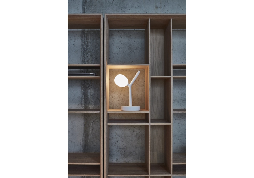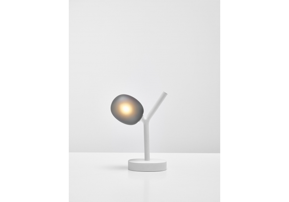 Ivy Battery von Lucie Koldova für Brokis entworfen, ist eine tragbare Tischlampe mit rundem Sockel aus pulverbeschichtetem Metall. Der Diffusor ist oval aus mundgeblasenem Glas mit einer säuregeätzten (undurchsichtigen) Oberfläche. Die Lichtquelle ist eine per Touch dimmbare LED mit einem schwarzen oder silbernen USB-Stromkabel. Ivy Battery ist in verschiedenen Ausführungen erhältlich.