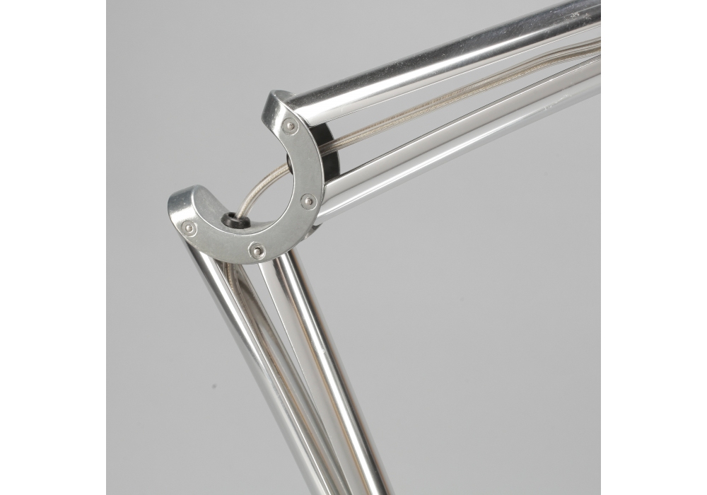 Naomi, von Yaacov Kaufman für Lumina entworfen, ist eine Tischlampe mit kreisförmiger Basisstruktur aus Aluminiumlegierung und Stahl mit beweglichen Armen. Der Diffusor ist um 180 ° vertikal verstellbar und um 360 ° drehbar und verfügt über eine LED-Schalter-Ein/Aus-Lichtquelle. Naomi ist in verschiedenen Ausführungen erhältlich.