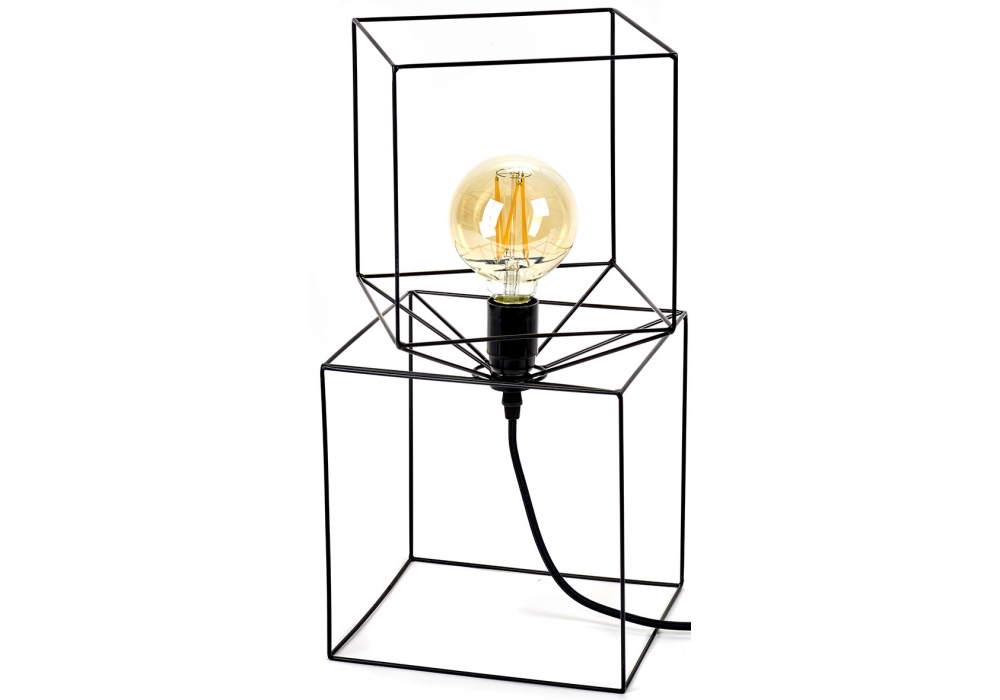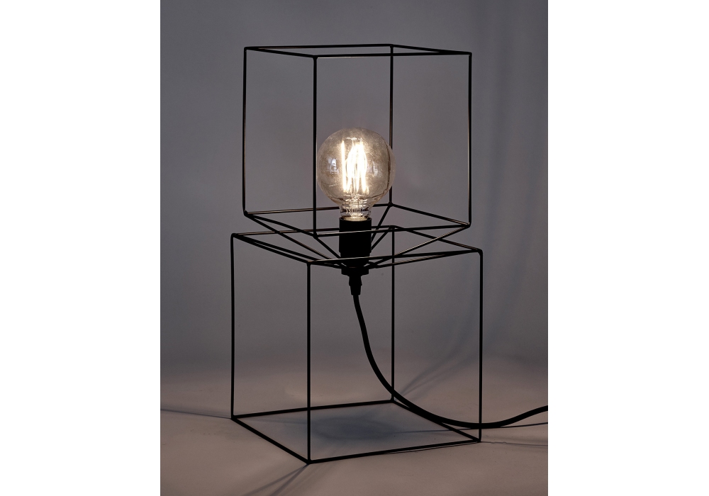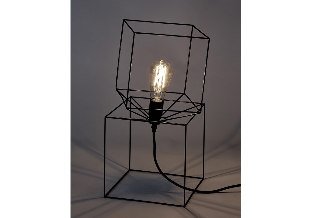 Conkubina, von Antonino Sciortino für Serax entworfen, ist eine Tischleuchte, die aus mehreren schwarz lackierten Metallstäben strukturiert ist, die zwei sich kreuzende viereckige geometrische Figuren bilden. Als Lichtquelle wird LED oder Halogen mit E27-Kupplung verwendet (nicht im Lieferumfang enthalten).