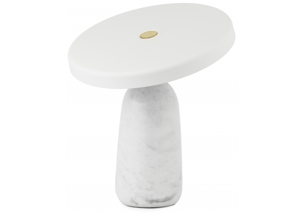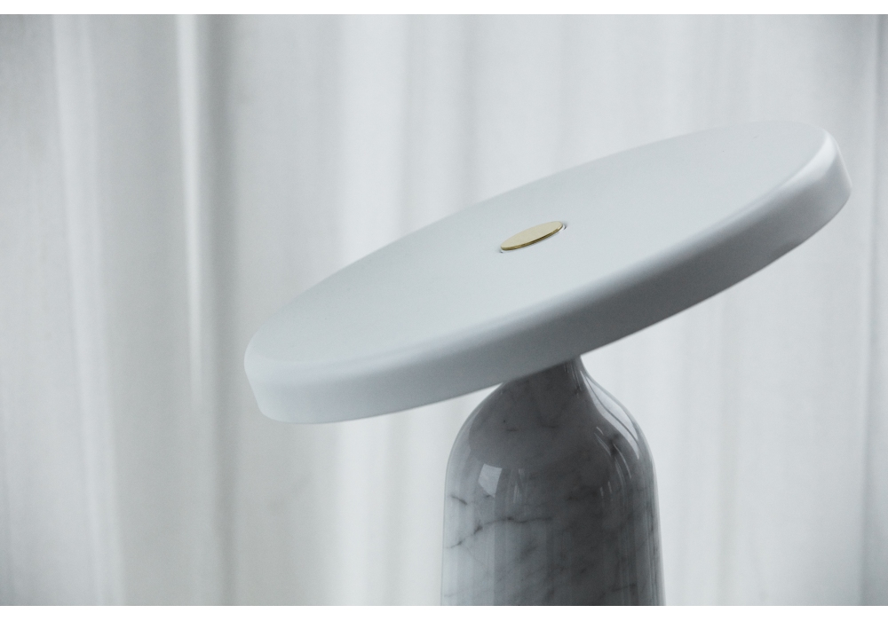 Eddy von Simon Legald für Normann Copenhagen entworfen, ist eine Tischlampe mit zylindrischem Sockel aus italienischem Marmor, erhältlich in den Ausführungen: grau, schwarz oder weiß. Der Diffusor ist aus rundem Stahl und kann mit Hilfe einer Messingkugel, die zwischen dem Diffusor und dem Lampenkörper positioniert ist, auf einer horizontalen Achse ausgerichtet werden. Die Lichtquelle ist ein dimmbarer LED-Typ (im Lieferumfang enthalten), der über ein Textilfaserkabel in der gleichen Farbe wie die Lampe betrieben wird. Eddy ist als EU- (Europa) oder US- (U.S.A.) Version erhältlich.