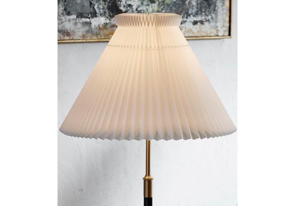 352 entworfen von Aage Petersen für Le Klint ist eine Tischleuchte die aus einer Kombination von Messing, Papier und Kunststoffmaterial besteht. Die Struktur besteht aus einem runden Metallsockel mit Messingdetails. Die vertikale Stange ist zur Höhenverstellung teleskopierbar, an der Spitze ist sie fixiert. Der kegelförmige Lampenschirm wird aus Papier oder Kunststoff hergestellt. Die verwendete Lichtquelle ist LED oder Halogen (nicht im Lieferumfang enthalten). 352 ist mit Diffusor aus Kunststoff oder aus edlem Papier erhältlich. edlem Papier erhältlich.